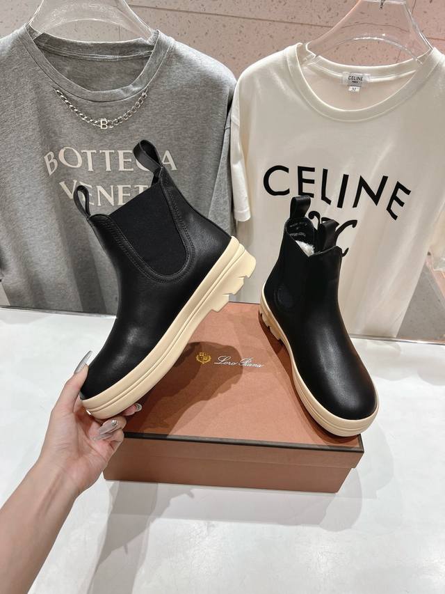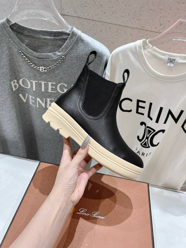 Loropiana LP诺悠翩雅24ss秋冬新款 Lakeside 牛皮切尔西短靴