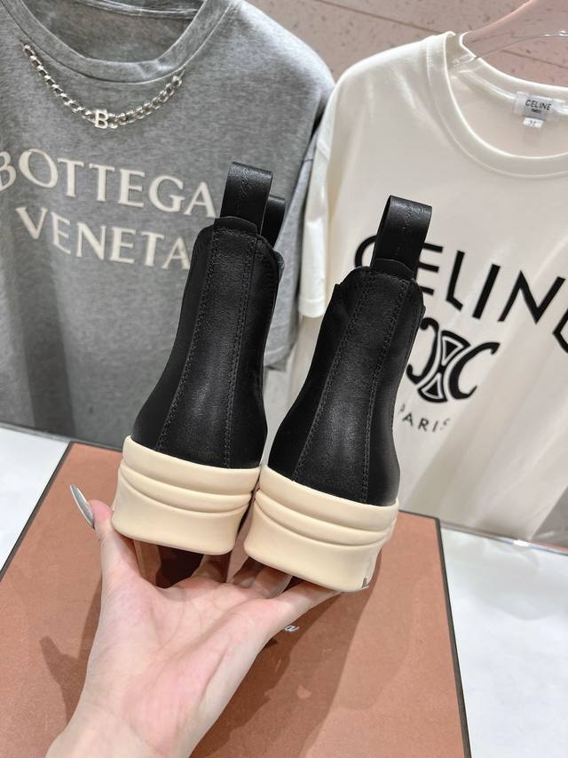 这款短靴采用头层牛皮制成,十分耐用且柔软,上脚非常舒适。鞋底设计汲取标志白色鞋底的灵感,以橡胶材质