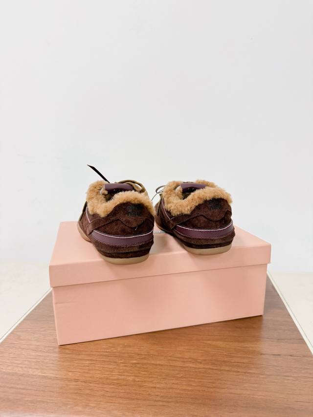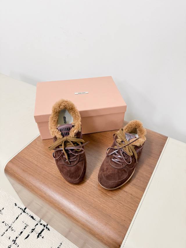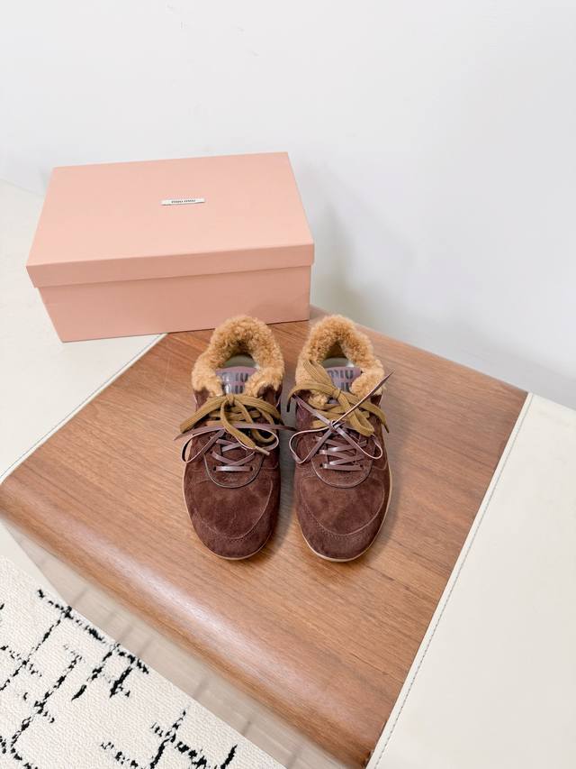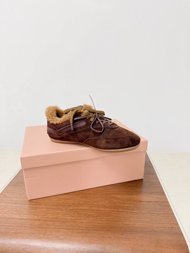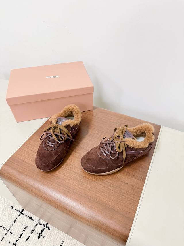 高版本出厂 毛里 DDD Miumi* 缪缪F022 2025Ss秋冬走秀新款系带德训鞋休闲运动鞋 DDD 这款系带休闲运动鞋~日常穿着必选!上脚超级好看舒适经典百搭的绝绝子单品! DDD 面料:进口订制反绒皮 DDD 内里:进口羊毛 DDD 大底:原版开模橡胶大底 DDD : 35一40 41定制不退换 DDD 极致性价比出厂,不议价。 DDD