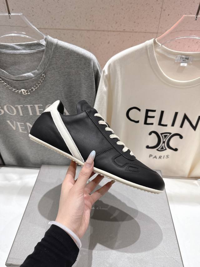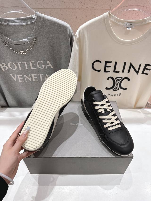 高版本出厂 男码+10 DDD Rick Owens欧文斯F024 2025Ss新款情侣款复古运动休闲鞋德训鞋阿甘鞋 DDD 原版购入开发 做货 掌握时尚的默契,采用全粒面小牛皮,散发出品质与独特设计的高级光芒。每一寸的小牛皮,都是奢华的代名词,触感柔软,充满贵族气息。这不仅仅是一款材质,更是对时尚品位的完美追求。搭配你的潮流穿搭,瞬间让整体品质提升。 DDD 鞋面:原版定制进口反绒皮 粒面小牛皮 DDD 内里:进口牛皮内里 DDD 大底:原版开模橡胶大底 DDD 码数:女码35-43 40-43订做不退