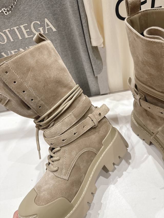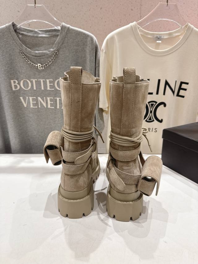 高版本出厂 超小众品牌Dymonlatry 2025Ss秋冬新款厚底工装靴马丁靴绑带中靴 自带厚底增高鞋底,轻松拉长比例增高,驾驭运动感街头造型 原版开模定制线