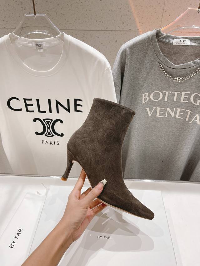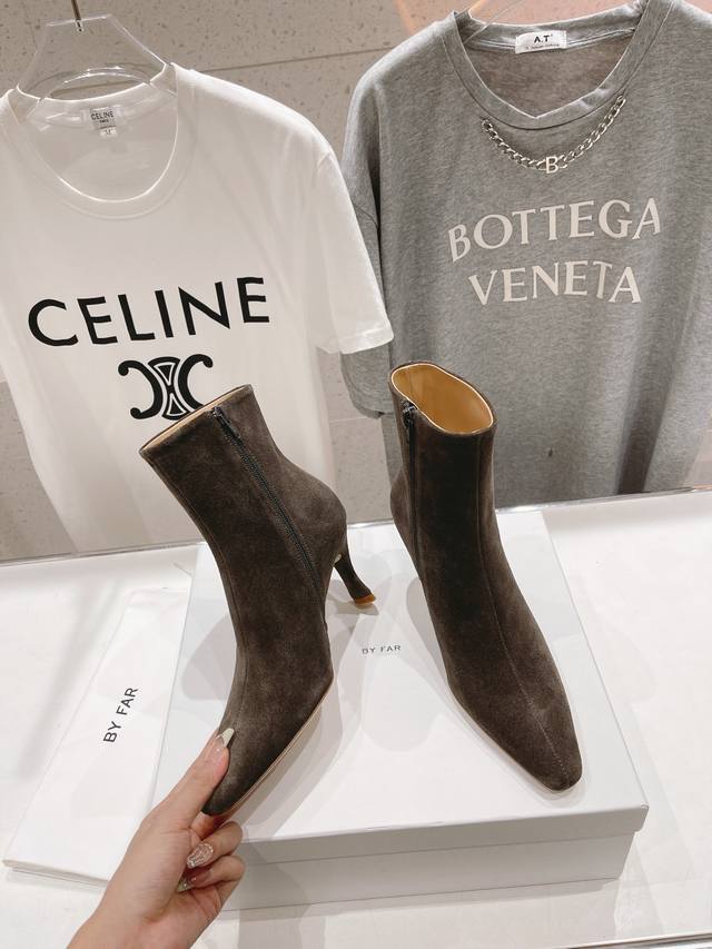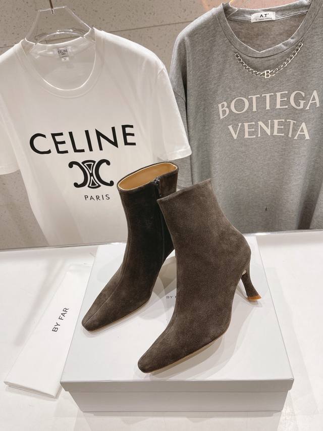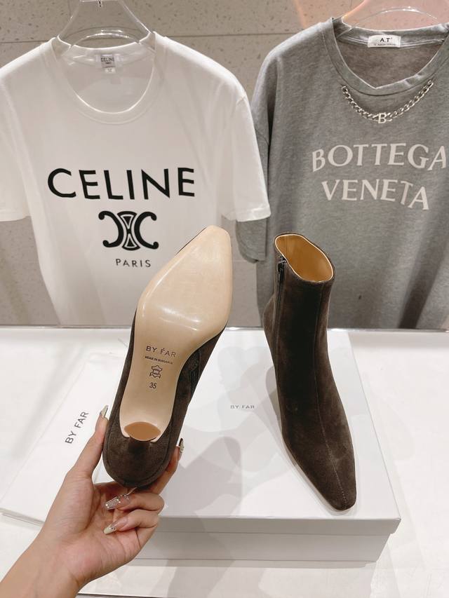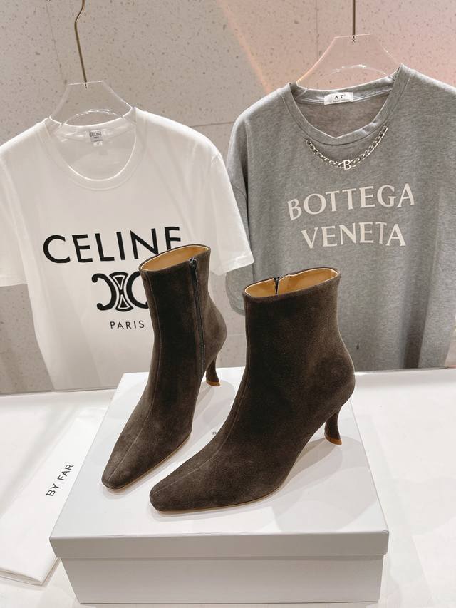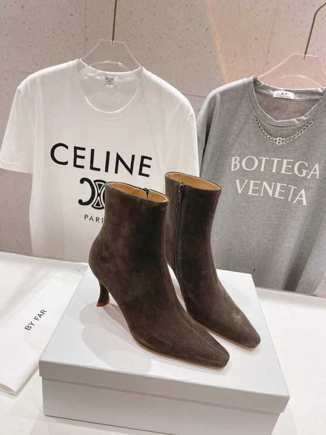 高版本出厂 By Far 秋冬上新 气质款 全皮版 小猫跟 新款靴子 1:1 正品购入 小方头 更加时髦 拉长腿型 可以看到我们靴子侧面是按照人体腿型设计出来的