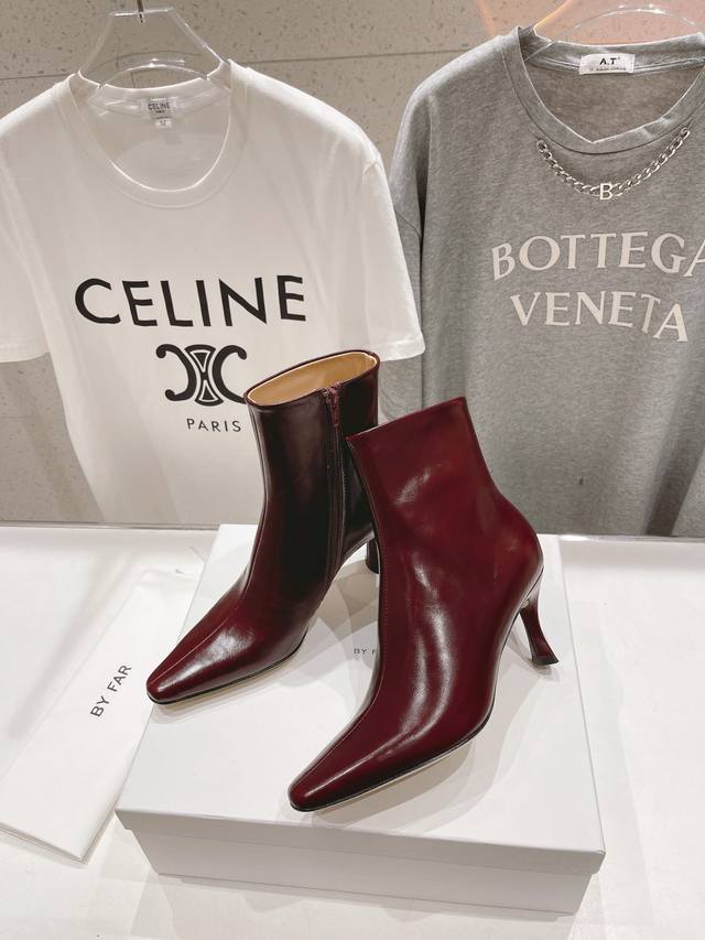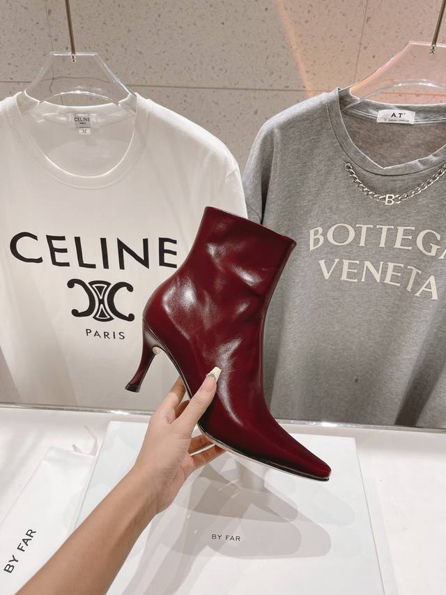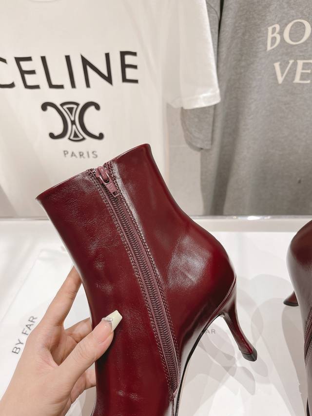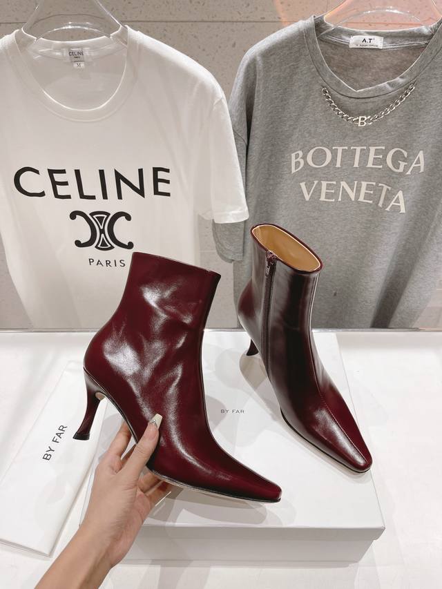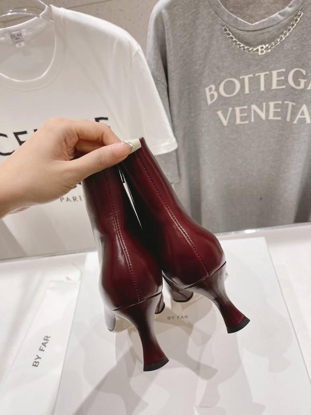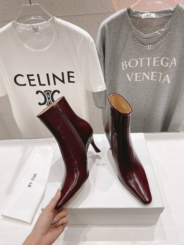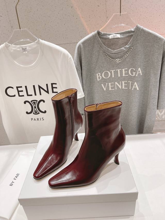 高版本出厂 By Far 2025秋冬上新 气质款 全皮版 小猫跟 新款靴子 1:1 正品购入 小方头 更加时髦 拉长腿型 可以看到我们靴子侧面是按照人体腿型设