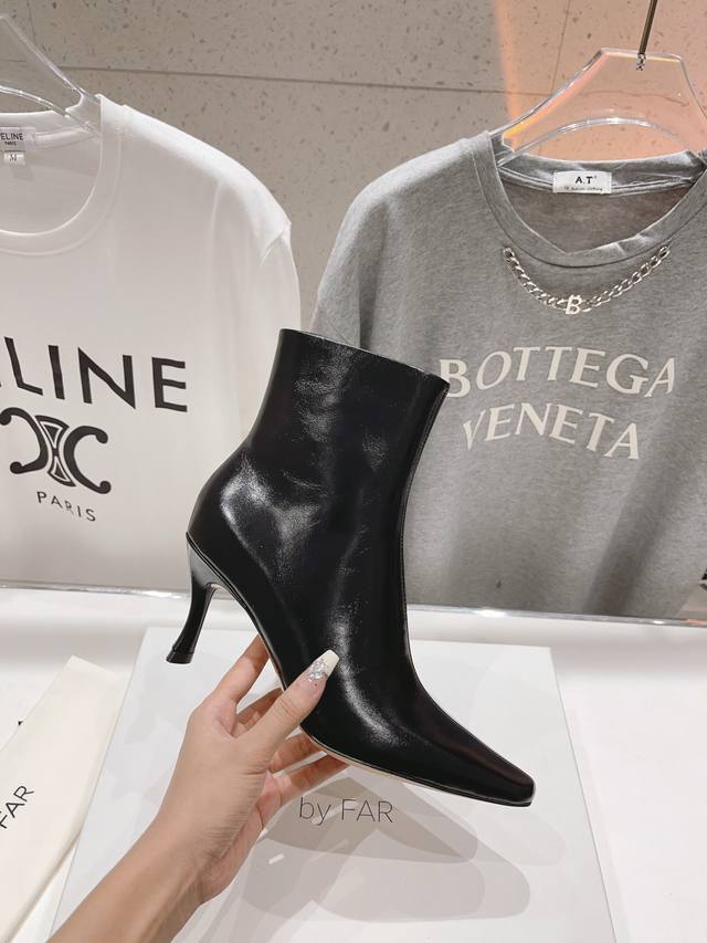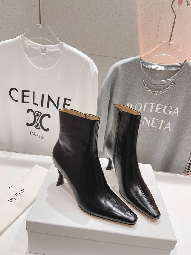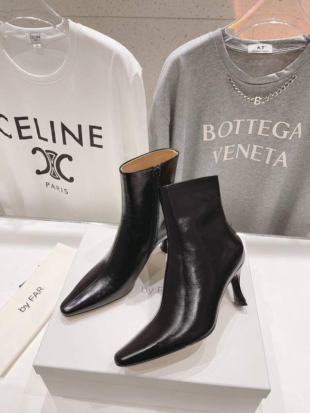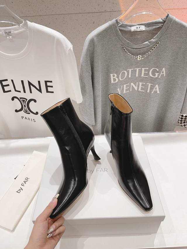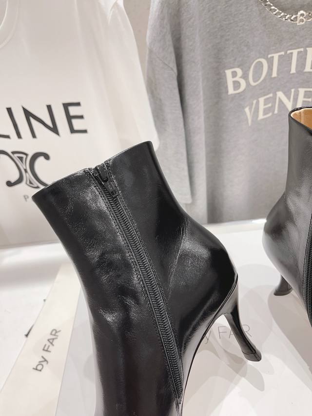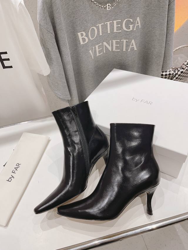 / 高版本出厂 By Far 2025秋冬上新 气质款 全皮版 小猫跟 新款靴子 1:1 正品购入 小方头 更加时髦 拉长腿型 可以看到我们靴子侧面是按照人体腿型设