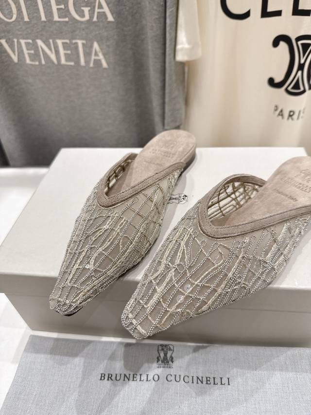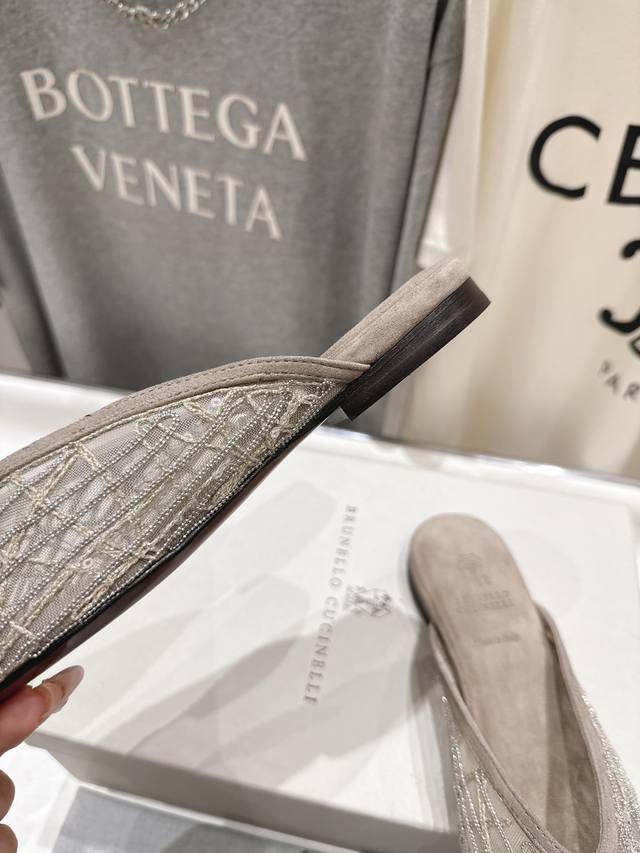 FFF 高版本出厂 DDD Brunello Cucinelli 新款Bc尖头时装鞋平底鞋半包拖鞋穆勒鞋 DDD Bc是意大利知名品牌,极简主义风格,复古又高级!简约又大气,属于非常耐看的款式!高级百搭之王,脚感很好很舒服!超级百搭!超级耐看!一年四季春夏秋冬皆适宜 DDD 鞋面:原版进口网纱 DDD 垫脚:牛皮 DDD 大底:原版真皮注塑大底 DDD 码数:35-42 40 41 订做不退换 DDD