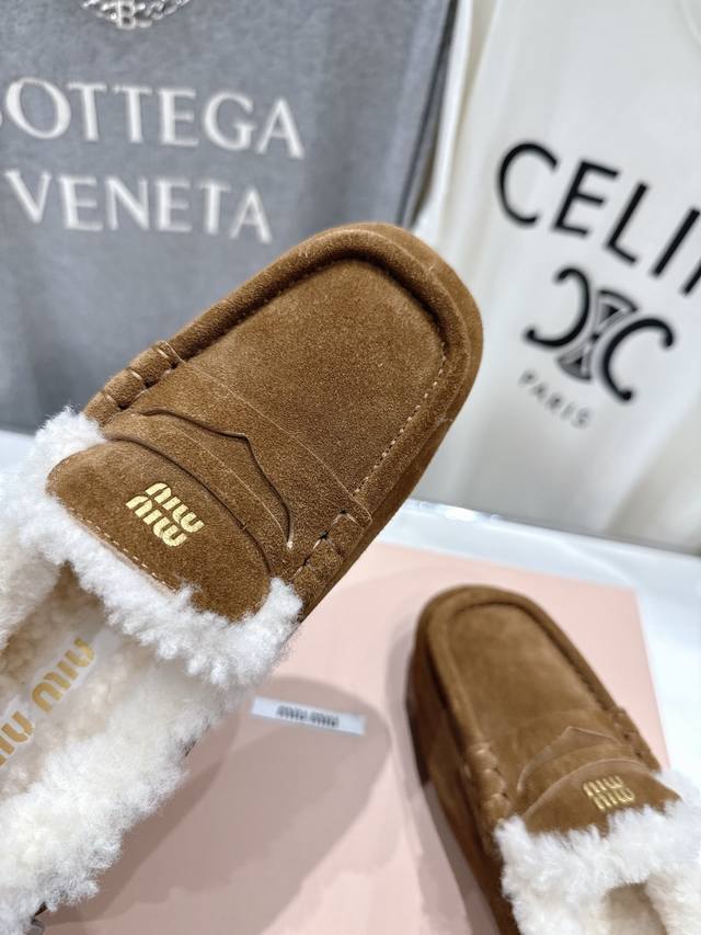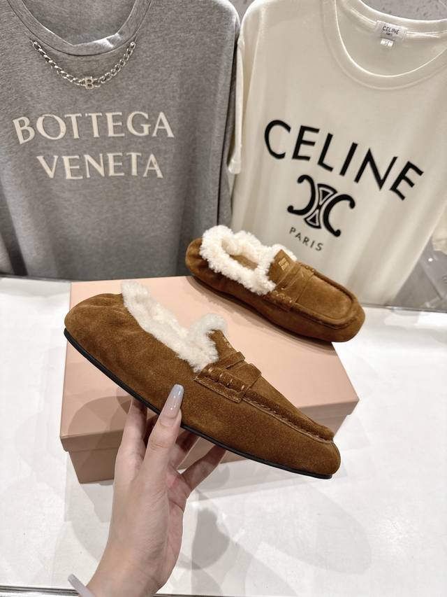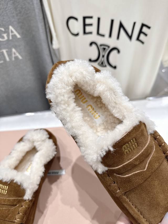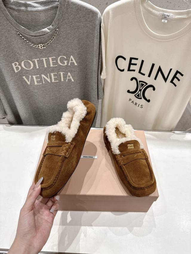 Miumiu 缪缪2025Ss秋冬走秀款一脚蹬驾车鞋加毛乐福鞋毛毛鞋