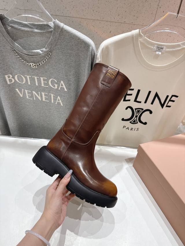 高版本出厂 Miumiu 缪缪25Ss秋冬 超大热走秀款 厚底防滑中筒靴马丁靴出现在各大时装杂志封面 各路明星、小红书博主着用,上脚尤为惊艳到你的一款,闭眼入都