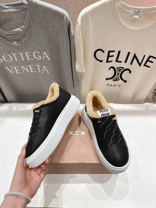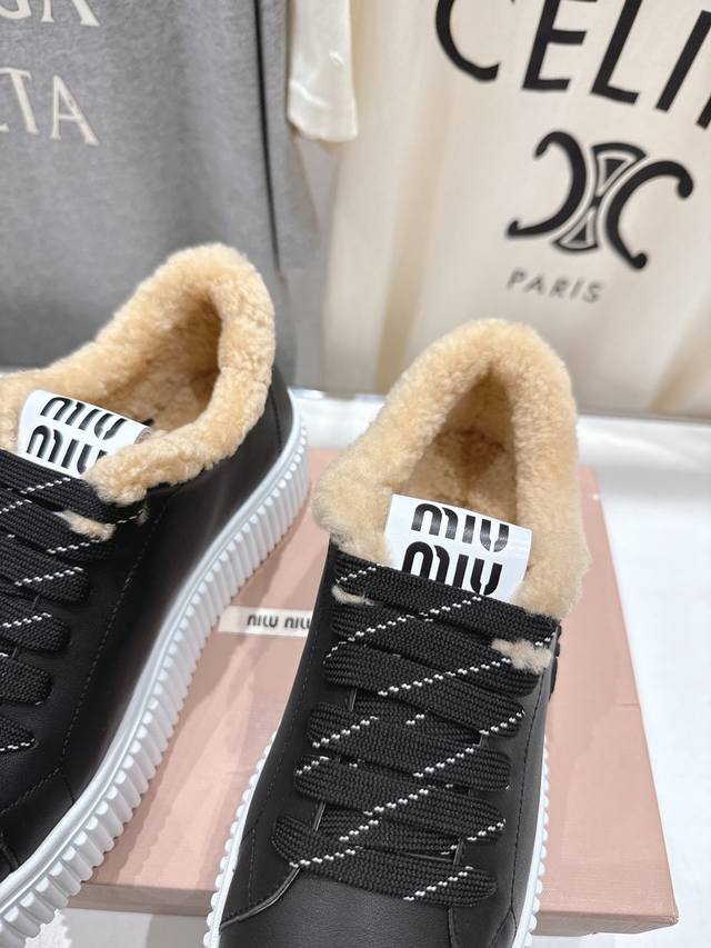 / 高版本出厂 Miumiu 缪缪F015 2025Ss秋冬新款系带厚底羊毛小白鞋运动休闲鞋毛毛鞋 这款系带运动休闲鞋~冬季日常穿着必选,保暖舒适~上脚超级好看舒适