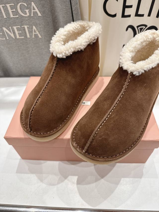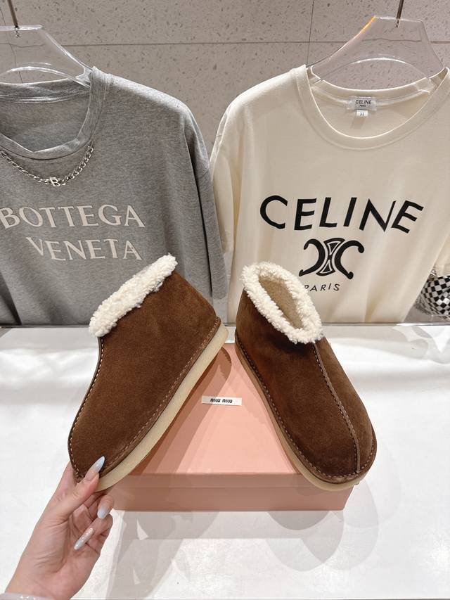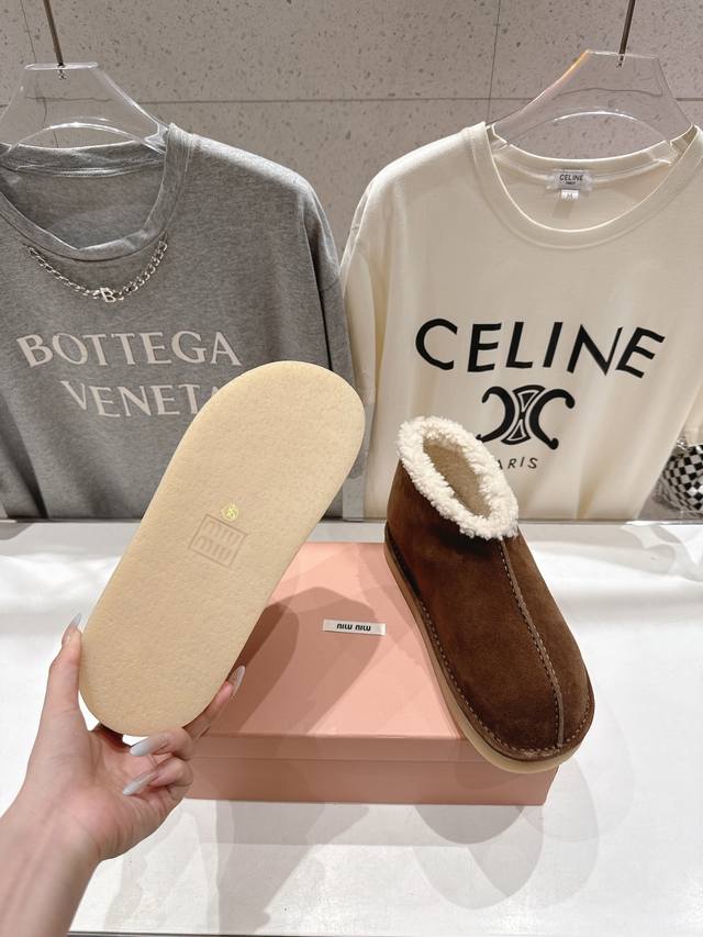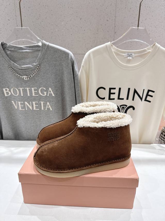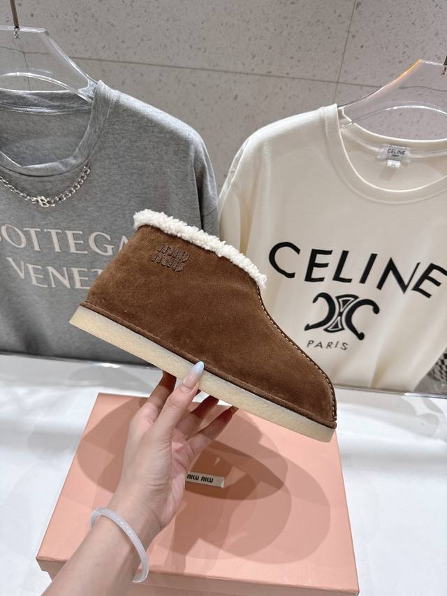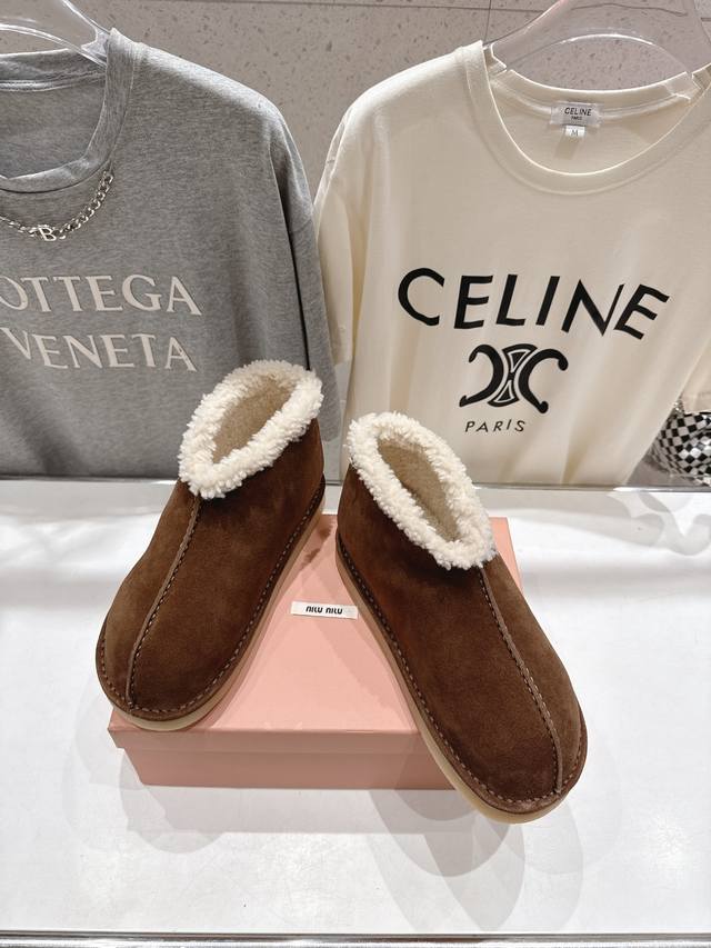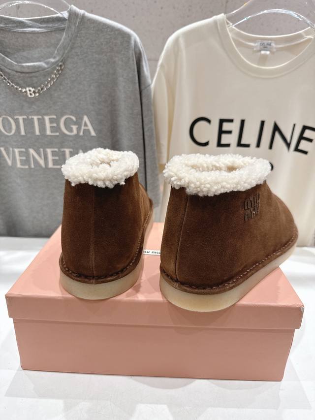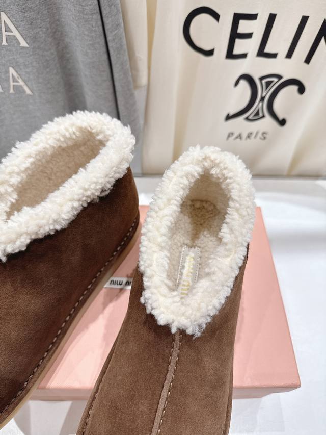 高版本出厂 Miumiu 缪缪F033 2025Ss秋冬走秀款 羊毛小短靴雪地靴毛毛鞋 经常出现在各大时装杂志封面 各路明星、小红书博主都有钟爱,上脚尤为惊艳到