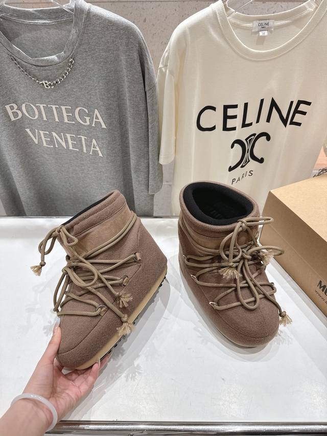 高版本出厂 Moon Boot F060 2025Ss秋冬季爆款保暖厚底雪地靴 丑萌月亮雪地靴 忘了Ugg吧,时髦人都在穿Moon Boot雪地靴 如果你难以接受Ugg的复兴 那现在有一款更另类的雪地靴又杀回来了,内增高4 Cm 那就是Moon Boot月亮靴 在千禧年就已经非常火了 当年Paris Hilton、Victoria Beckham 等名人经常穿它,如今Y2K风潮再次流行,痞幼同款Qq秀穿搭,万人大秀的丑萌雪地靴重新翻红,不分男女不分左右,看着巨无霸巨显瘦还暖和好穿 面料:原版定制 牛皮 高