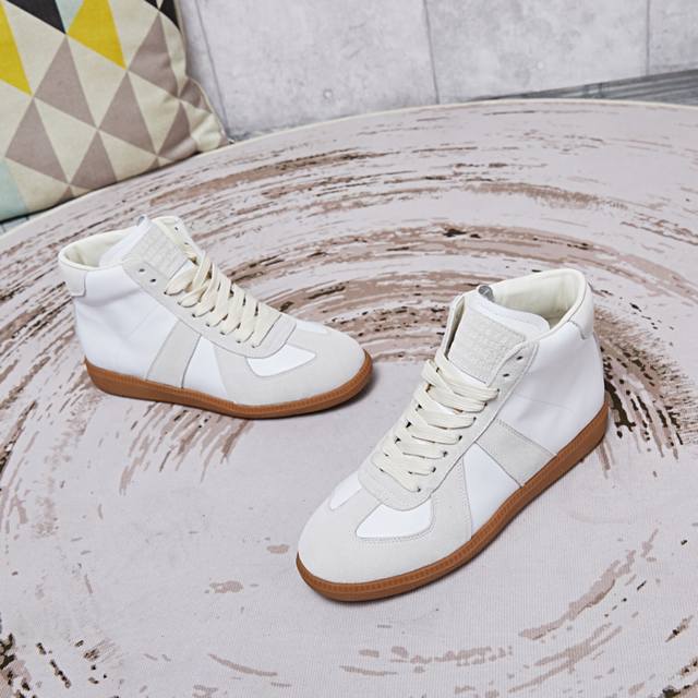 高版本35--44情侣款 |德训休闲板鞋,鬼才设计师品牌,一个轻奢品牌高邦 这一款德国训练鞋延续了经典的T形真皮拼接设计,经过设计团队多次的精心改良,只为让您体验最原始的军旅味道~材质:头层牛皮柔软细腻的特点与麋鹿皮的绒毛质感相结合,使其既有超高的柔软舒适度,又同时保持不错的透气性能~舒适与质感并行,轻松驾驭四季穿着任何搭配 鞋底采用复古牛津大底,柔软度远远高于其他任何橡胶底的鞋子 面料:头层牛皮 内里:羊皮内里 鞋垫:活动羊皮乳胶鞋垫 码数:女码 35--40 码数:男码 39--44