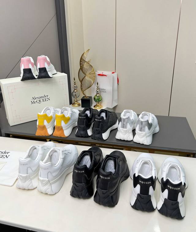 高版本35--44情侣款 Alexander Mcqueen 亚历山大麦昆系带圆头 低帮 生活休闲鞋 情侣鞋2025最新米兰时装周T台走秀款,独特个性的设计,上