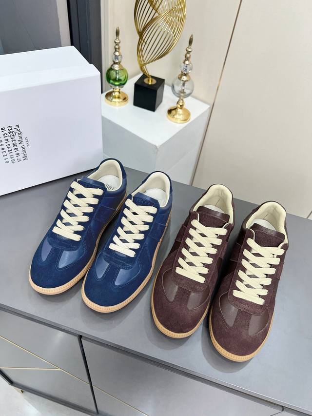 高版本35--45情侣款 |德训休闲板鞋,鬼才设计师品牌,一个轻奢品牌 这一款德国训练鞋延续了经典的T形真皮拼接设计,经过设计团队多次的精心改良,只为让您体验最