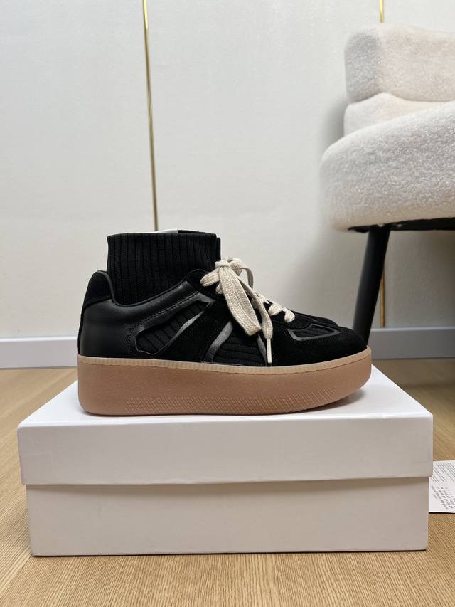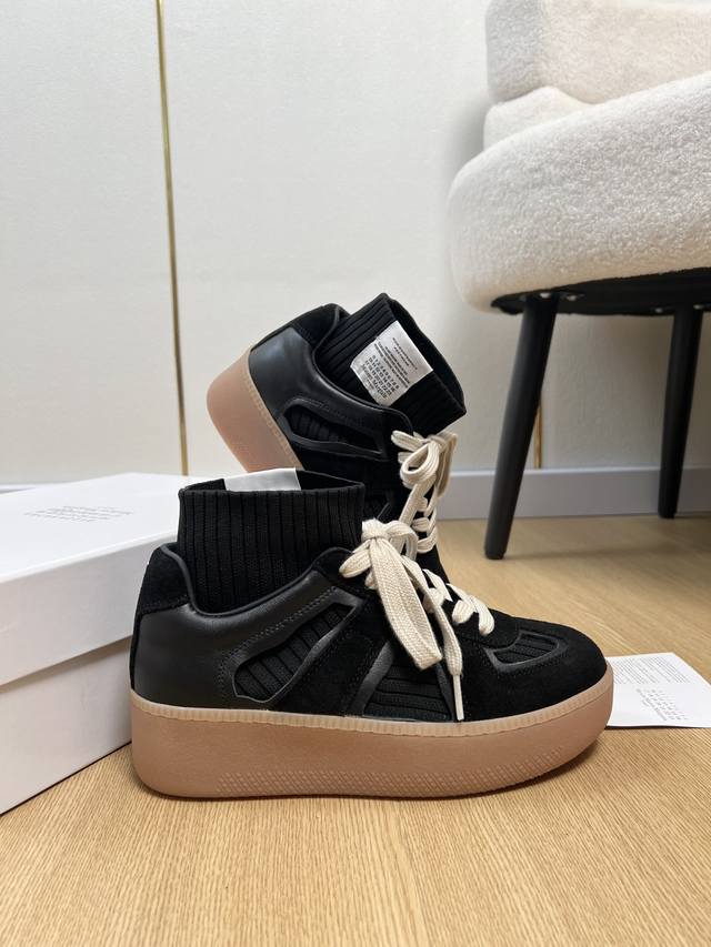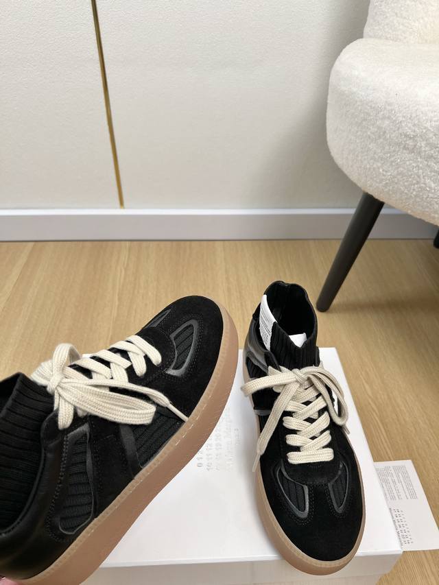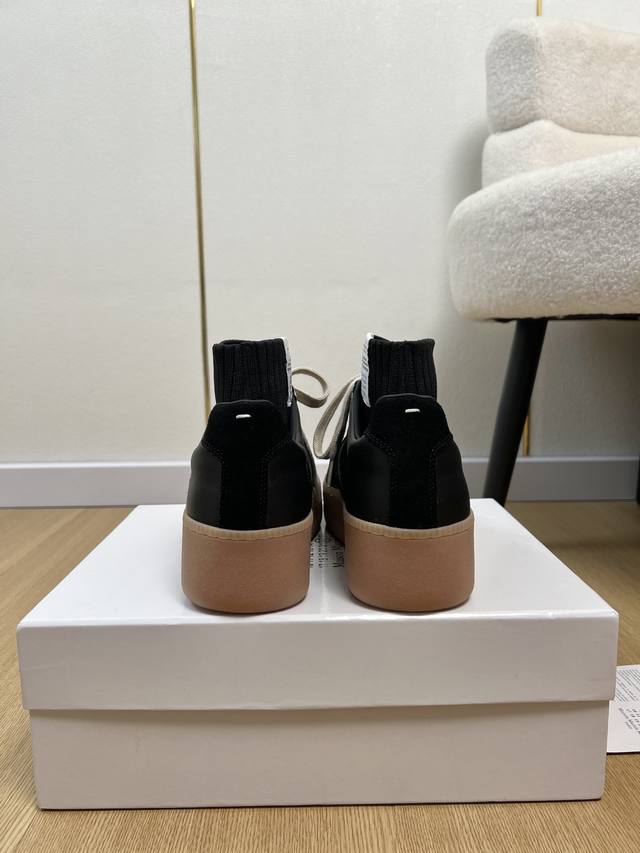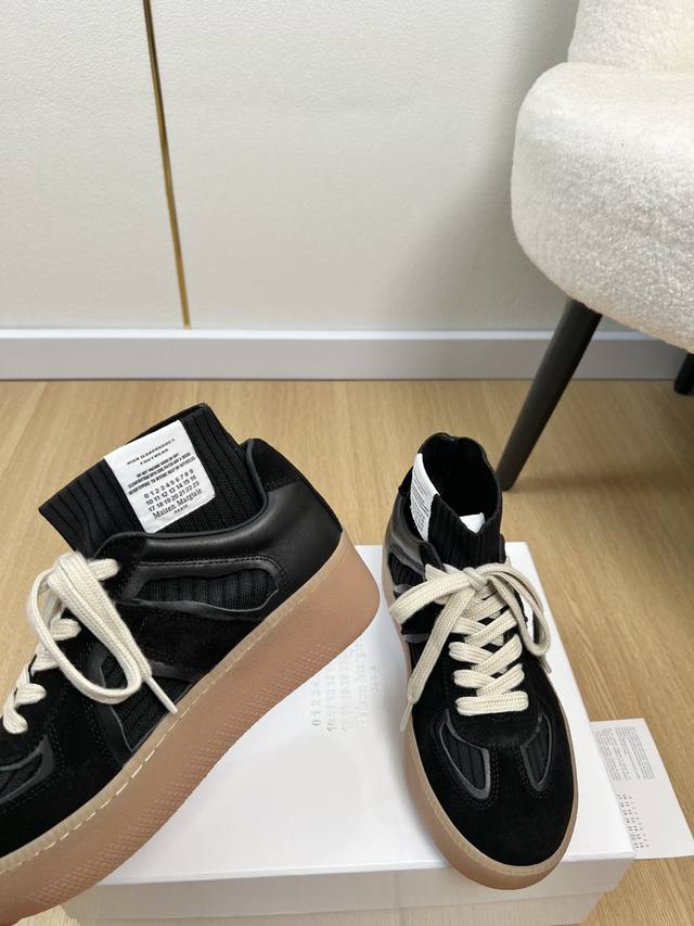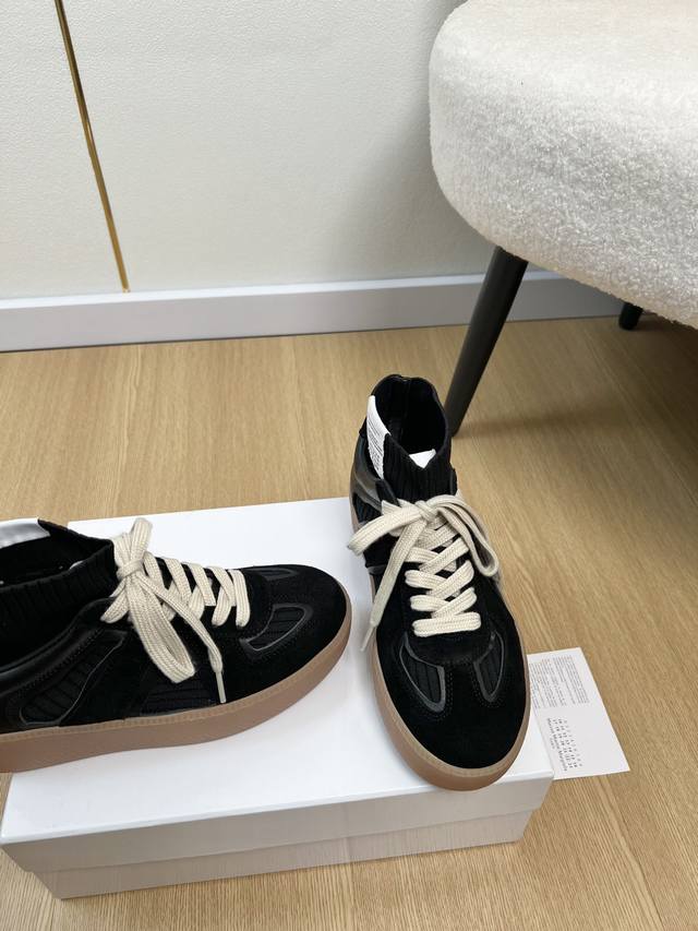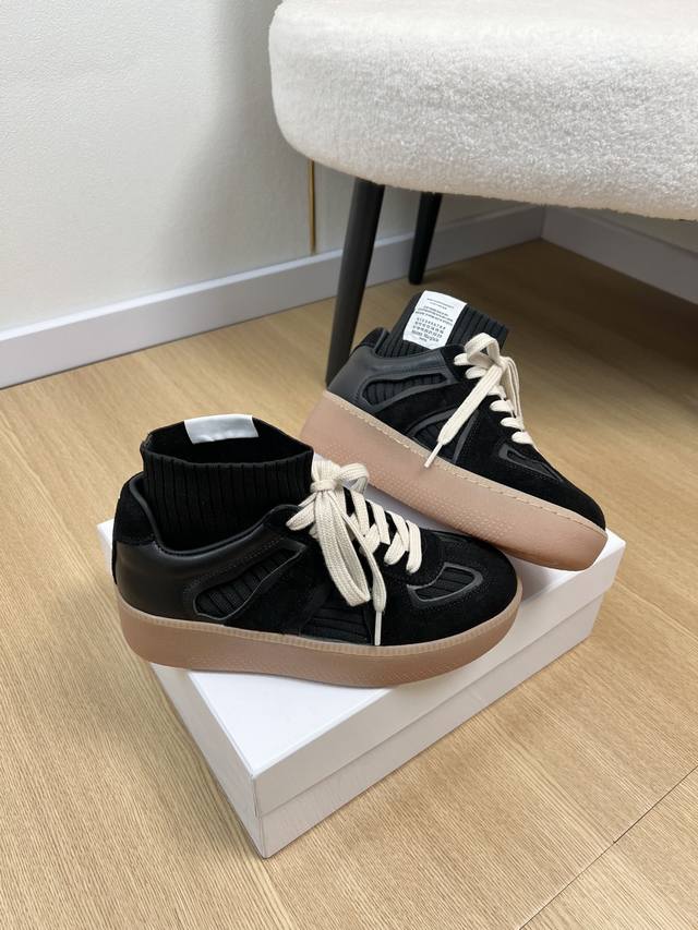 高版本Maison Margiela *马吉拉 2025 DDD 2025秋冬新品 专柜新款德训厚底飞织袜子运动鞋系列~ DDD Mm6马吉经典阿甘复古休闲运动鞋 四季可穿搭经典不过时的款!休闲又随意,多种材质撞色的拼接,时髦感倍增,鞋带鞋底互相呼应,日常好看又百搭!随便穿搭就可以很高级!搭配各种风格都可轻松驾驭! DDD 鞋面 :原版定制牛皮+牛反绒 DDD 内里 :原版丝绸羊皮 飞织袜子 DDD 垫脚 :原版丝绸羊皮 DDD 大底 :原版开模牛筋橡胶大底 DDD 底厚 :4.5Cm DDD 码数 :3