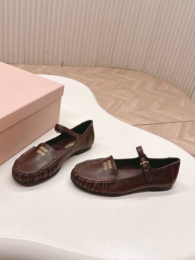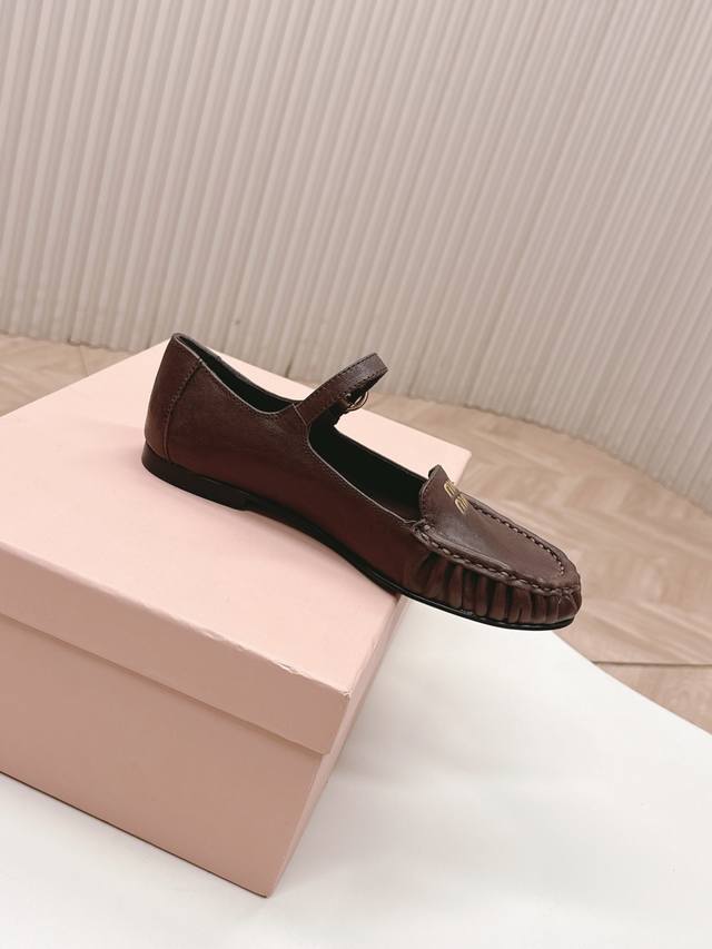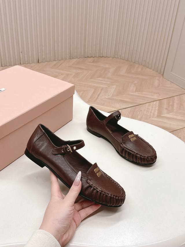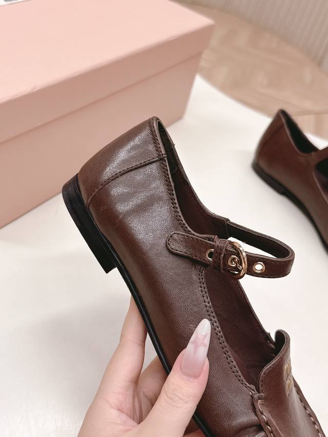 / 高版 Miumiu26春款 新款单鞋玛丽珍小皮鞋 乐福鞋 楦型百搭瘦脚Yyds.造型立体饱满,帅气十足 上脚舒适 非常复古风、气场十足,原版电绣Logo设计风格
