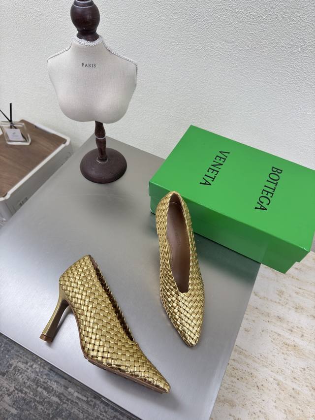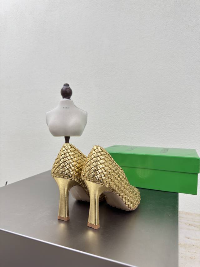 高跟 一体手工 编织无接缝Bv Sofia 高跟 9Cm 手工一体编织 系列单鞋5 毫米级 编织单鞋 真皮手工编织 金色 编织 这款经典款 简直Bv最新天花板啦四色 彩色百搭 简约一块皮5 毫米抽条 手工编织而成 高档舒适 垫脚羊皮内里舒适高端 大底选用意大利真皮大底&注塑橡胶工艺 运用轻染工艺 对标对版 选用原版包装 鞋子布袋采用印胶Logo工艺 市场最高端 采用热熔胶定型鞋头 后跟 易回弹不变形 鞋面车线选用意大利电脑针车 做工精细 选用原版包装 真心对待客人 35 36 37 38 39 40 41