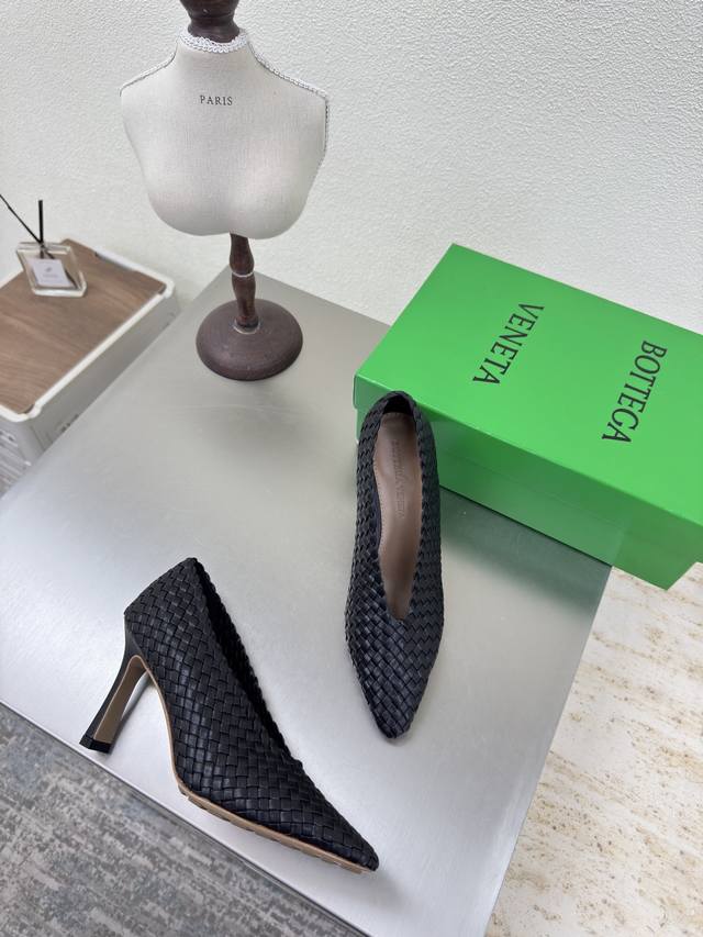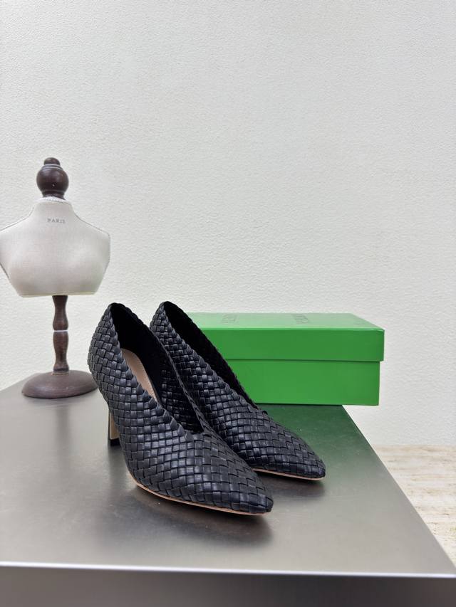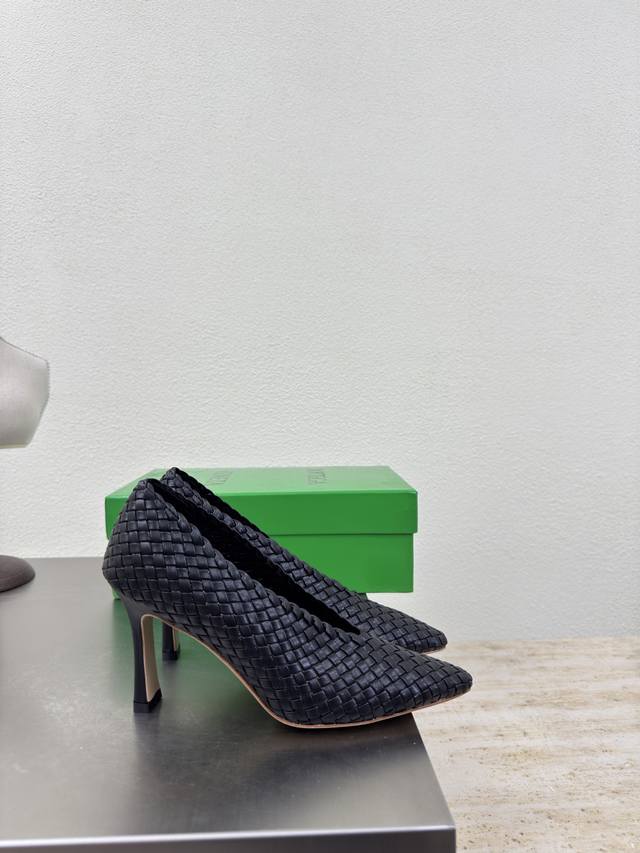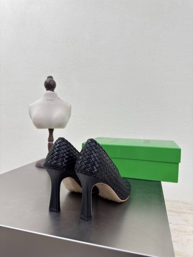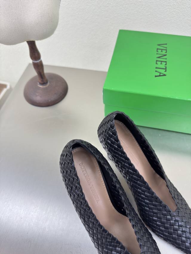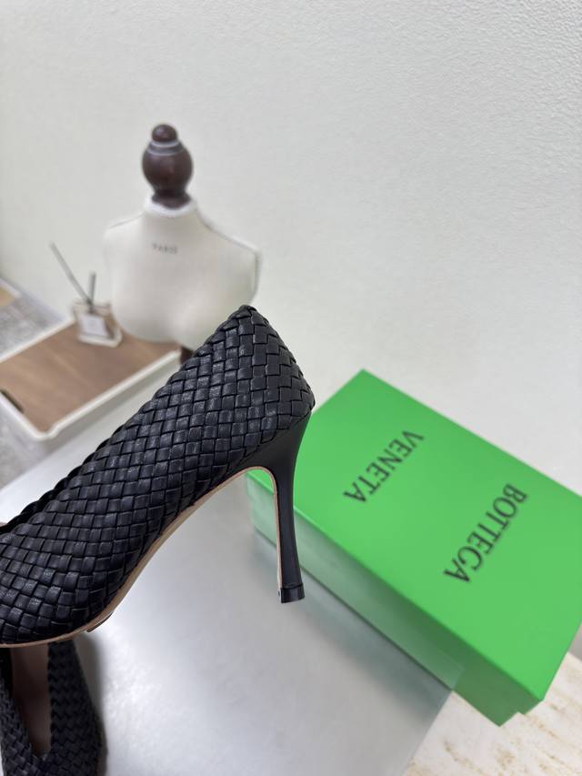 高跟 一体手工 编织无接缝Bv Sofia 高跟 9Cm 手工一体编织 系列单鞋5 毫米级 编织单鞋 真皮手工编织 黑色 编织 这款经典款 简直Bv最新天花板啦