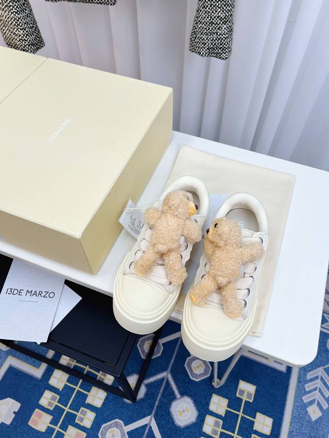 13Demarzo 小众潮牌 24Ss新款 小熊 贴章 厚底 帆布 休闲鞋