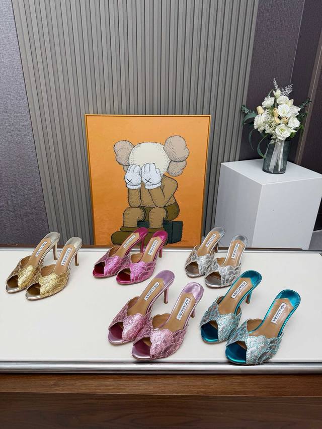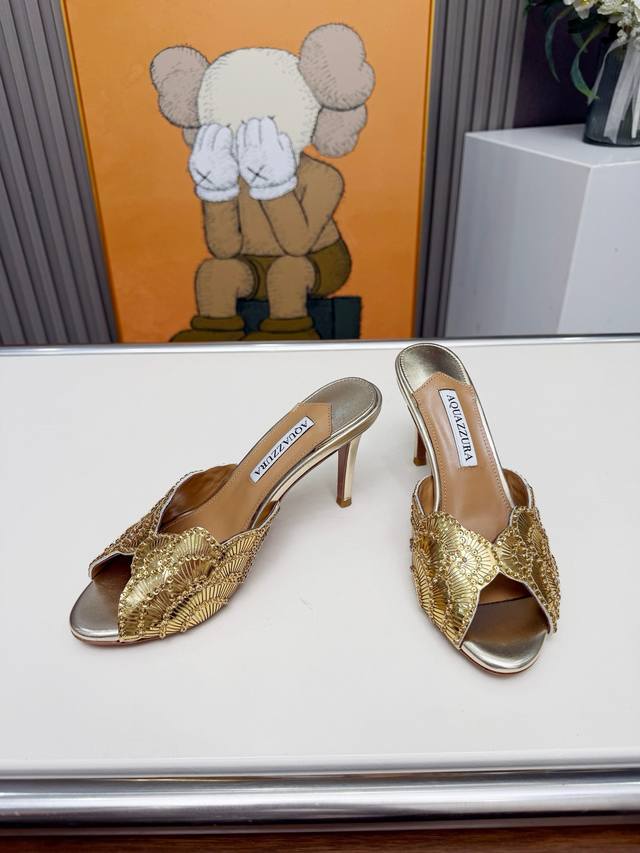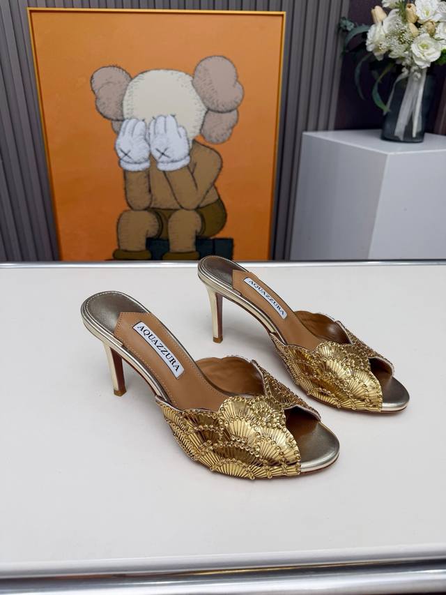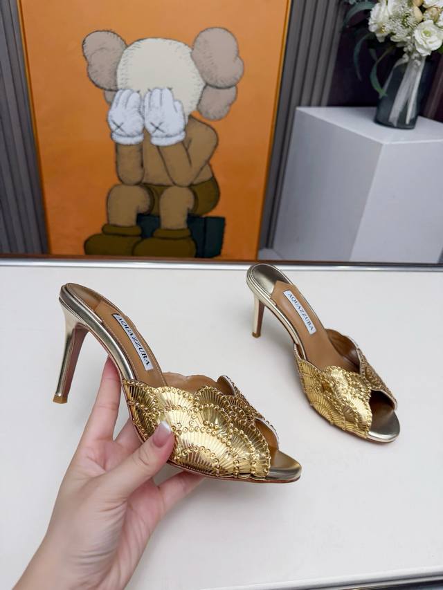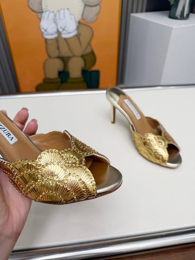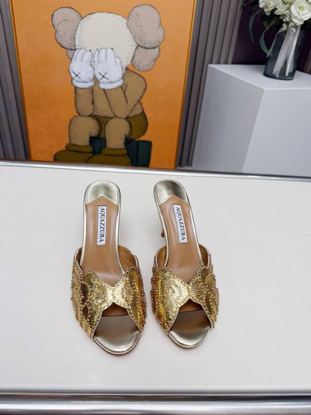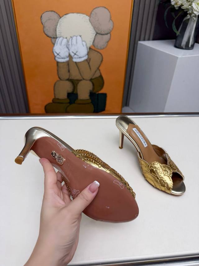 / 2025新款 Aquazzura 鞋面:手工缝钻 内里:羊皮 跟高: 8Cm,10Cm 大底:A级原版真皮大底 码数:Size.34–43 34.41.42.4