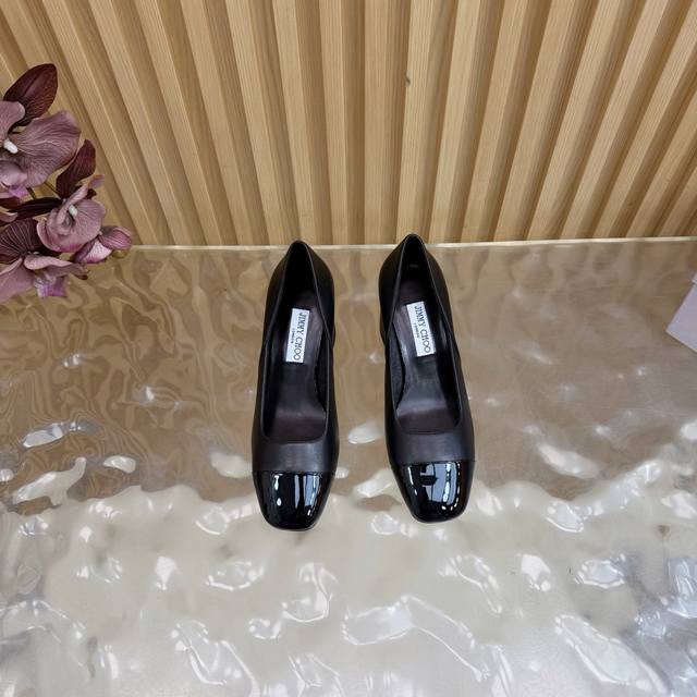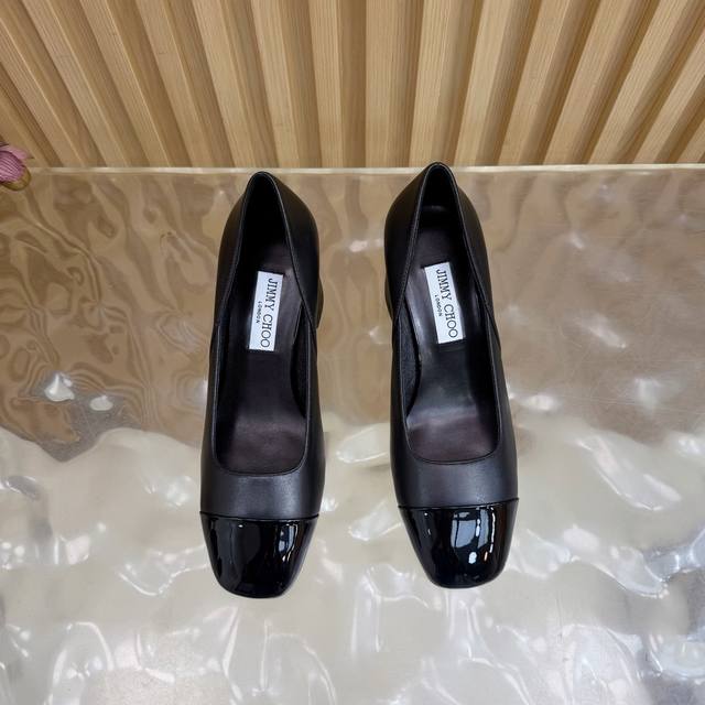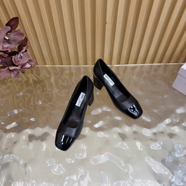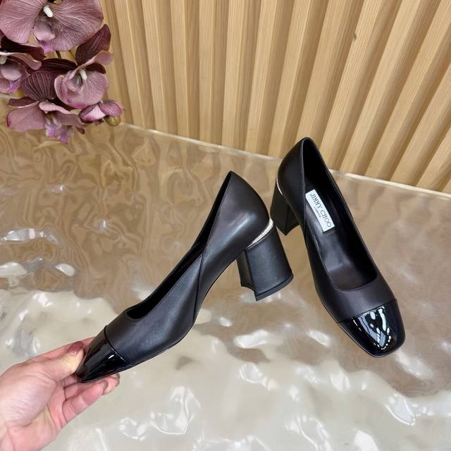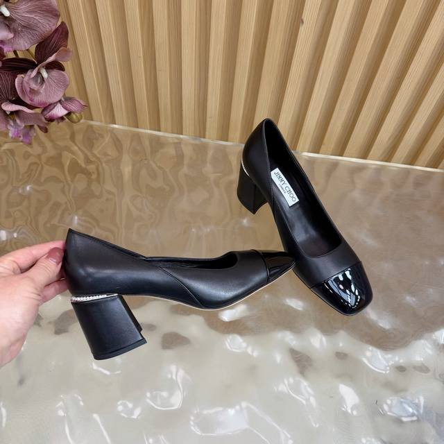 2025新款 Jimmy Choo周仰杰经典拼色 粗跟单鞋 Jc家永恒经典之作 简约设计 满满的少女风 既摩登又复古的味道 整体版型没有什么花里胡哨的搭配设计