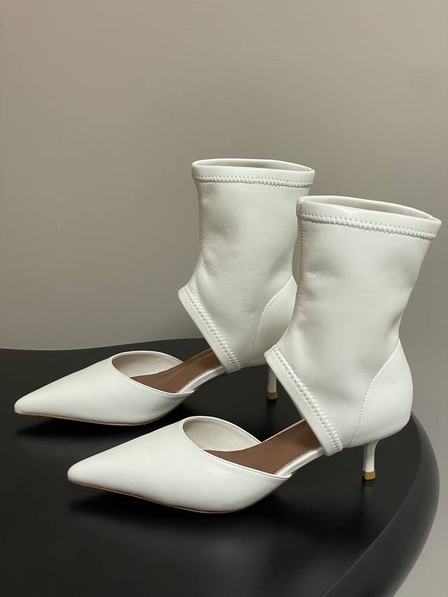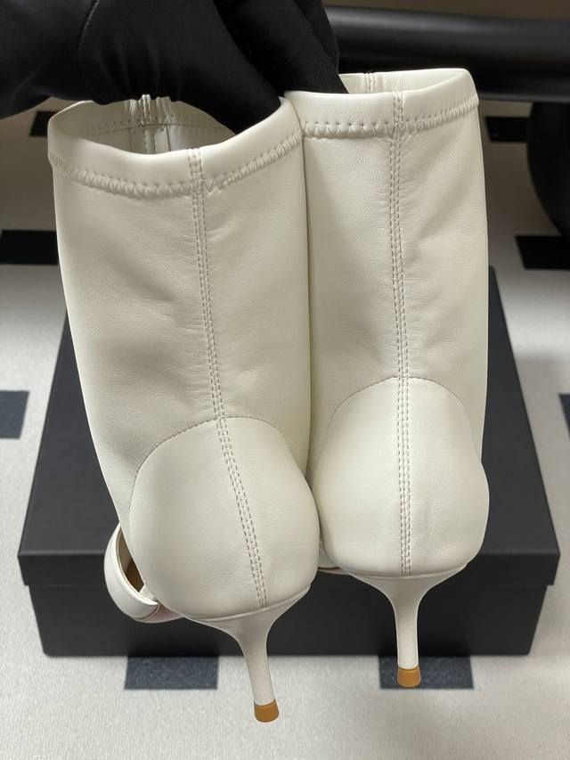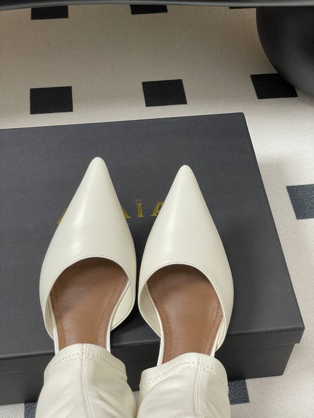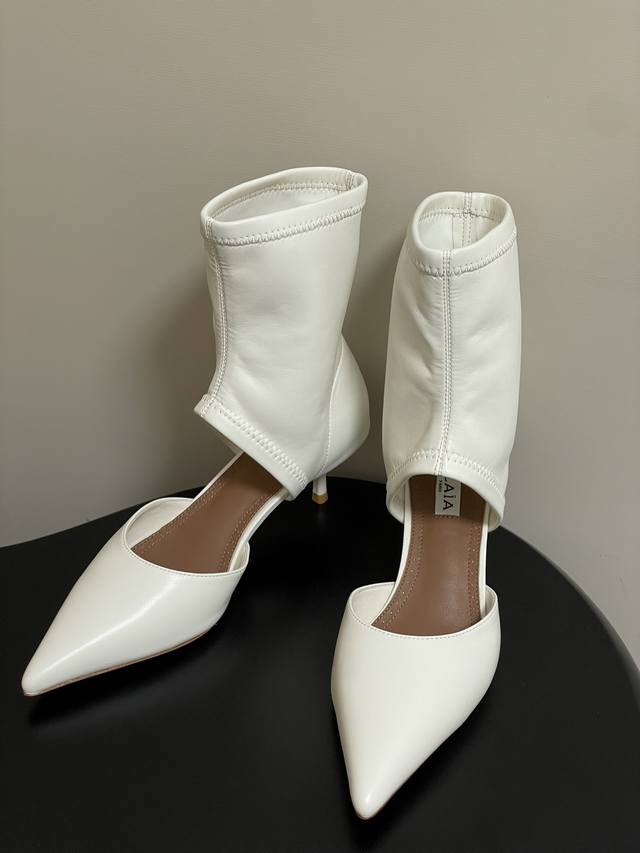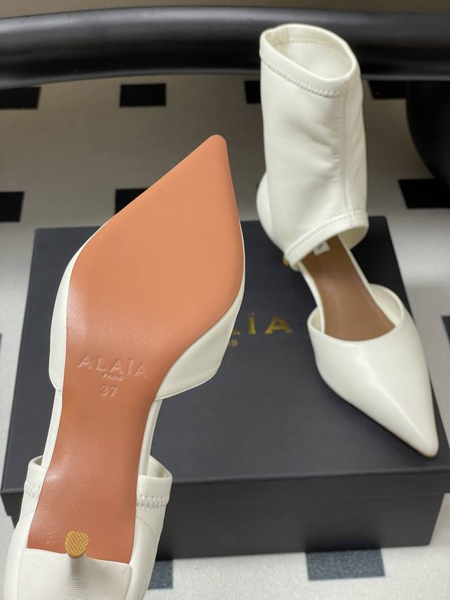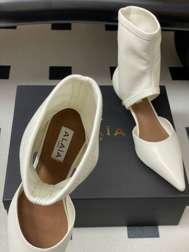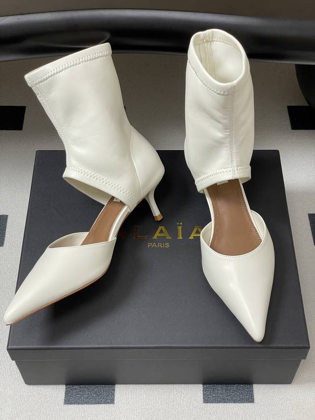 2025早秋新款Alaia阿莱亚 弹力绒面皮短靴 尖头中空个性镂空细跟踝靴