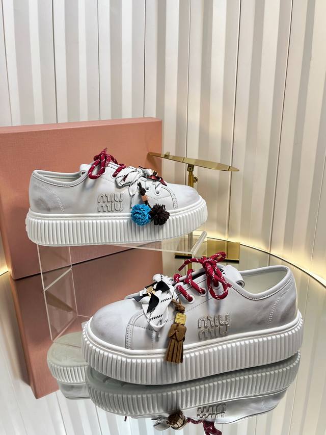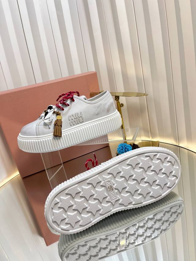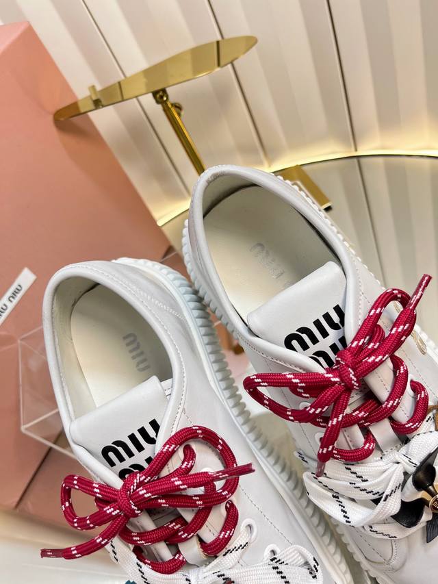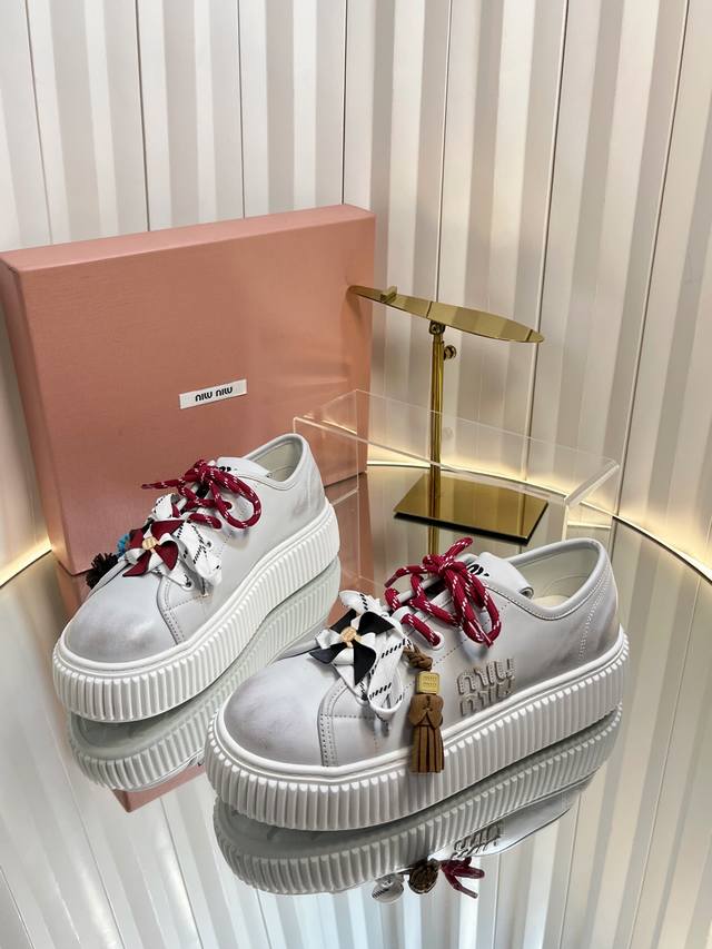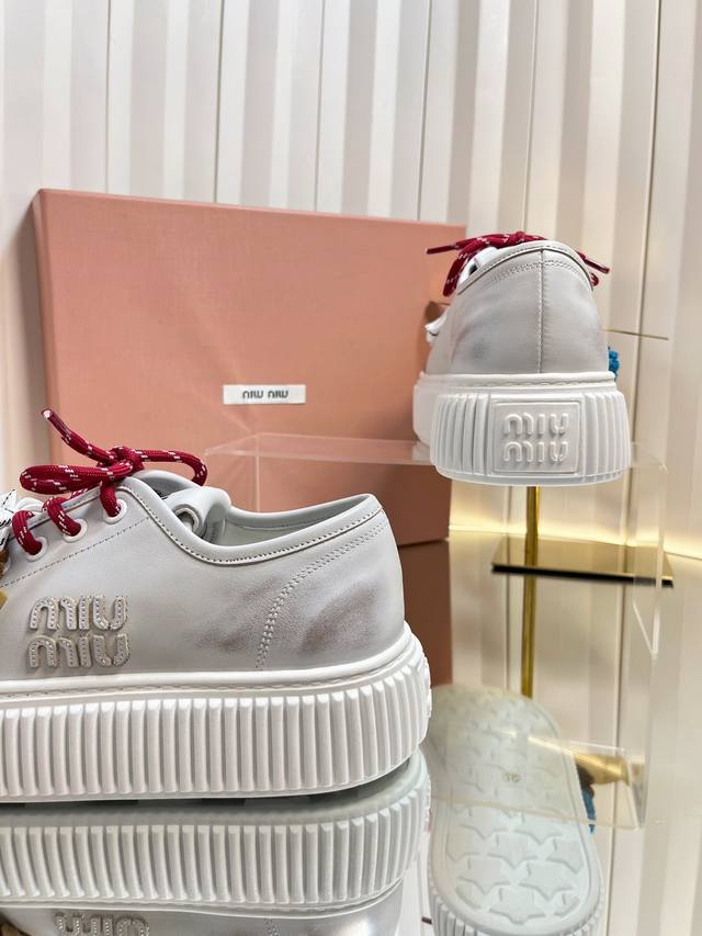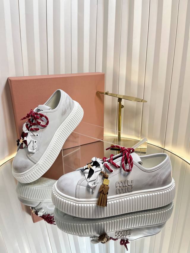 2025缪缪秋冬新款 厚底 饼干鞋 ,简约造型,原版开模鞋底, DDD 饼干鞋的热度真的是只增不减的 不仅因为其极高的配适性 也得益于其出众的脚感之鞋底一层层波浪就像饼干 一 般!颜值在线抗打而Miu家鞋款一向走的是少女范儿 没多少个女生能逃得过缪家的甜美!而这一次则是Miu家的饼干鞋系列 DDD 虽说是简约的设计 但这个Logo鞋舌也极具辦识度!随意搭配长裙 短裙牛仔裤休闲系列等 都能穿出与众不同的风格 DDD 鞋面:牛反绒 牛皮两个板面,内里,羊毛跟皮两个板面 DDD 原版开模大底.底6Cm DDD