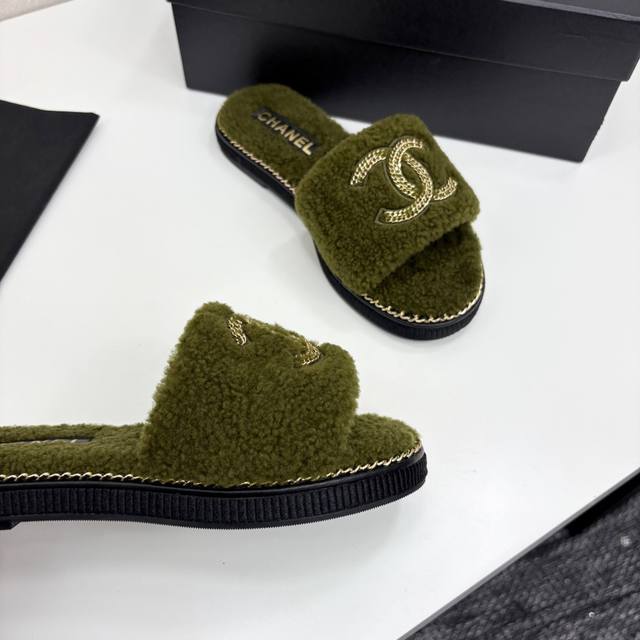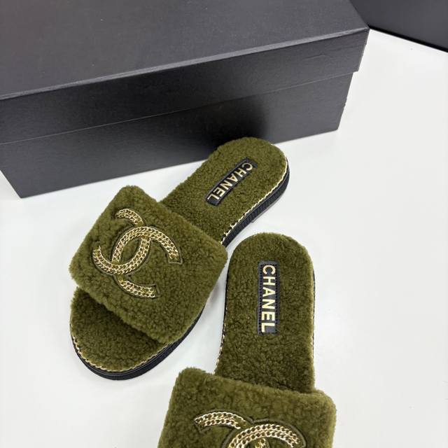 2025Sss官网、小红书同步最新配色小香家爆款火热上线,做工升级版,高品质! 时尚潮流最新款链条毛毛拖,上脚超百搭暖底,女主们的最爱 鞋面:羊毛 内里:羊毛