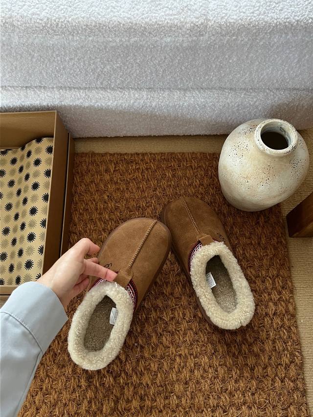 / 2025Ugg小土豆民族风卷毛款羊毛鞋,3色,35-40码! 鞋口那一圈精致的民族风花纹织带,色彩碰撞巧妙,满满的异域风情 ,像是把民族艺术穿在了脚上。 毛茸茸