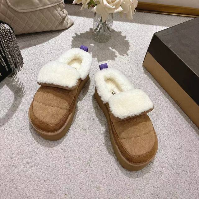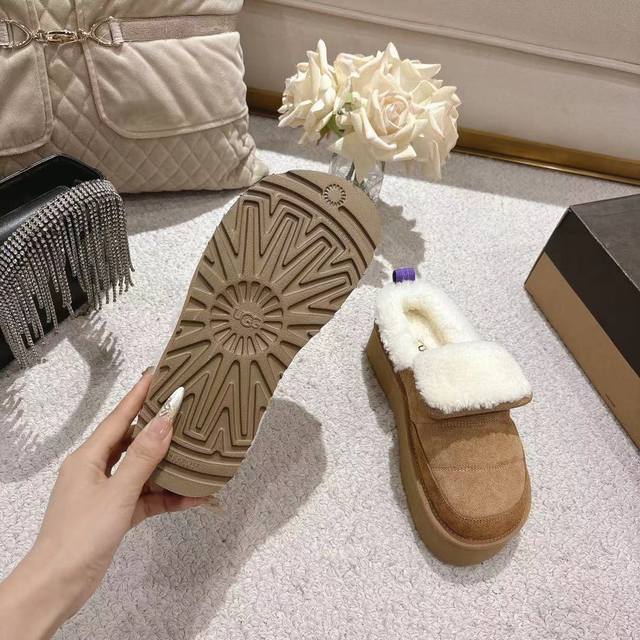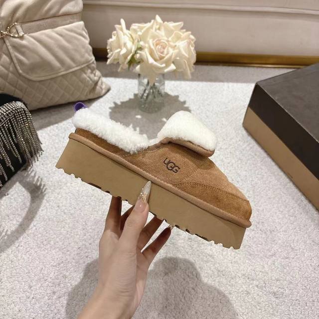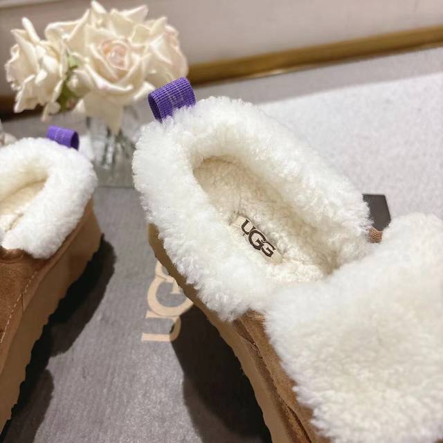 2025Ugg米其林毛毛虫拖鞋,鞋口外翻毛设计,时尚又百搭,面料,高丝光牛反绒,欧洲进口羊羔毛,原版开模大底,,