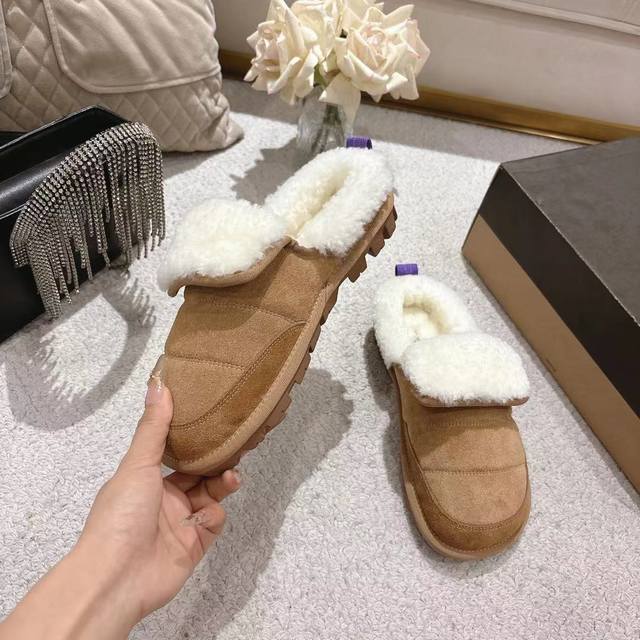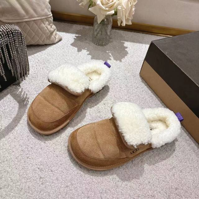 2025Ugg米其林毛毛虫拖鞋,鞋口外翻毛设计,时尚又百搭,面料,高丝光牛反绒,欧洲进口羊羔毛,原版开模大底,,