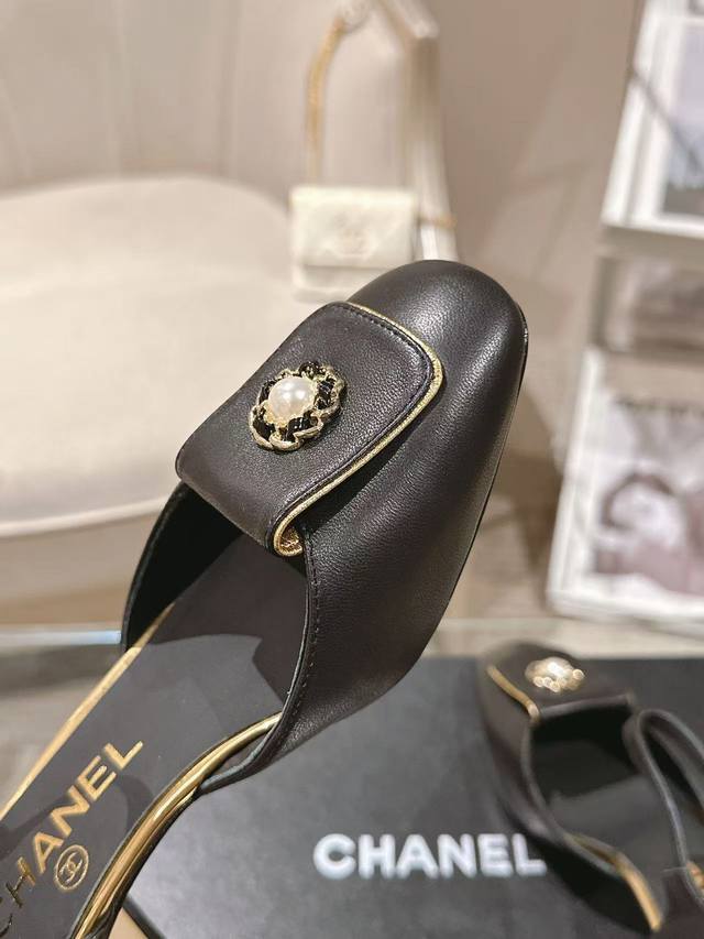 FFF 2075-3 埃及系列优雅穆勒春鞋 鞋面:原版进口混种皮+精致珍珠点缀+内里:垫脚特定水染丝愁混种小羊皮 大底:意大利本色真皮大底、跟高5.5Cm 鞋码: 35-39 订做34-40-41-42 原版专柜全套豪华包装 DDD