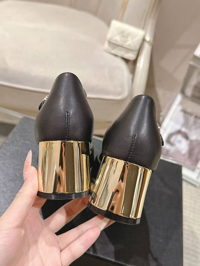2075-3 埃及系列优雅穆勒春鞋 鞋面:原版进口混种皮+精致珍珠点缀+内里:垫脚特定水染丝愁混种小羊皮 大底:意大利本色真皮大底、跟高5.5Cm 鞋码: 35