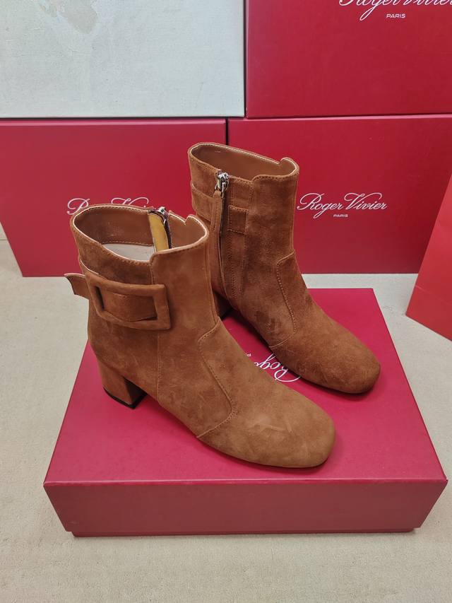 2225 专柜新款方扣粗跟短靴 鞋面:原版羊京绒 漆皮 内里:特定柔软羊皮里垫脚 大底:原版开模定制意大利真皮印刷大底,跟高4.5Cm 鞋码: 35-39 34