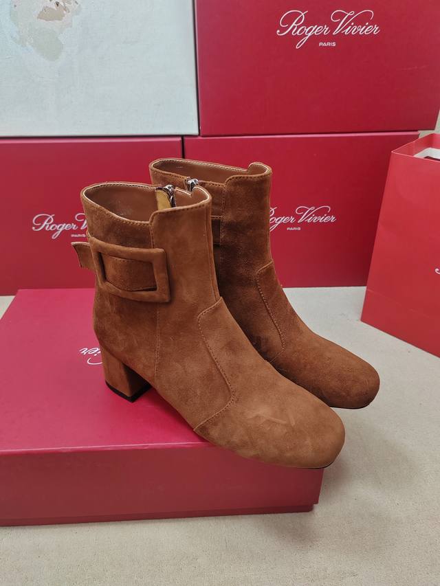 / 2225 专柜新款方扣粗跟短靴 鞋面:原版羊京绒 漆皮 内里:特定柔软羊皮里垫脚 大底:原版开模定制意大利真皮印刷大底,跟高4.5Cm 鞋码: 35-39 34