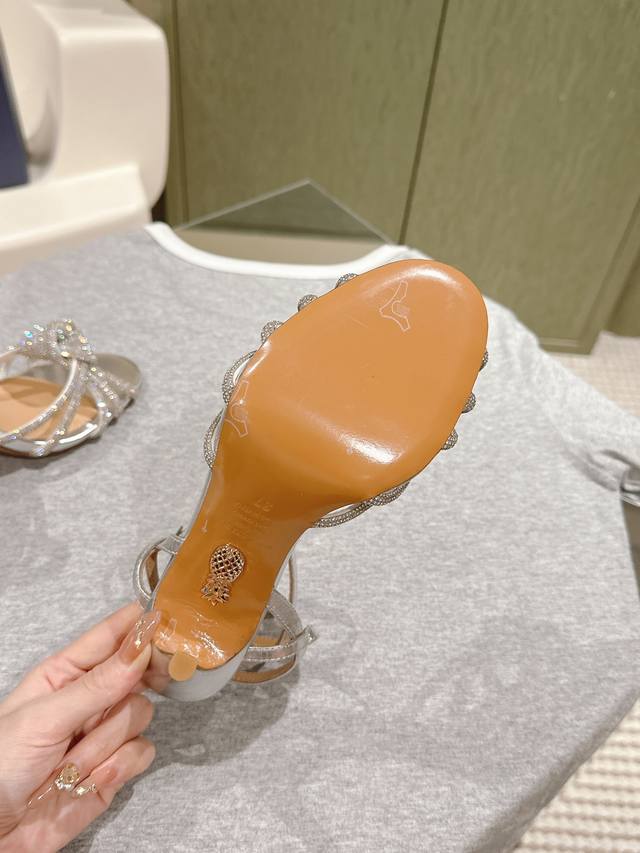 224 Aquazzur* 菠萝早春专柜新品仙女时装鞋系列,大量上新同步官网全系列均可定制龙年主打一个火爆,全网各大网红纷纷开秀,绝美的穿搭系列! ★★★★★ 鞋面 牛皮羊皮烫钻 内里 原版定制柔软羊皮 意大利真皮大底 跟高 1.5 10.5Cm 码数 34-42 34 40 41 42 定制不退换 专柜同步礼盒包装!