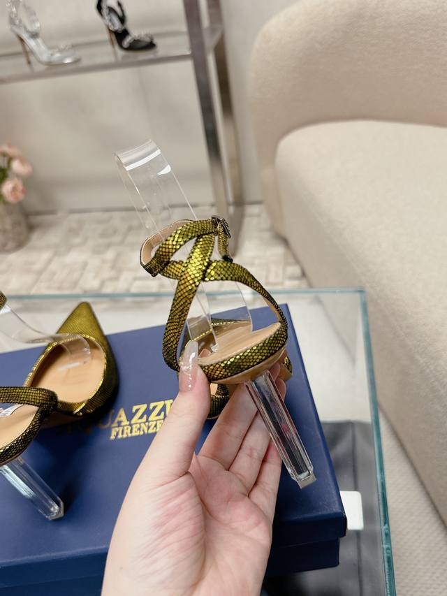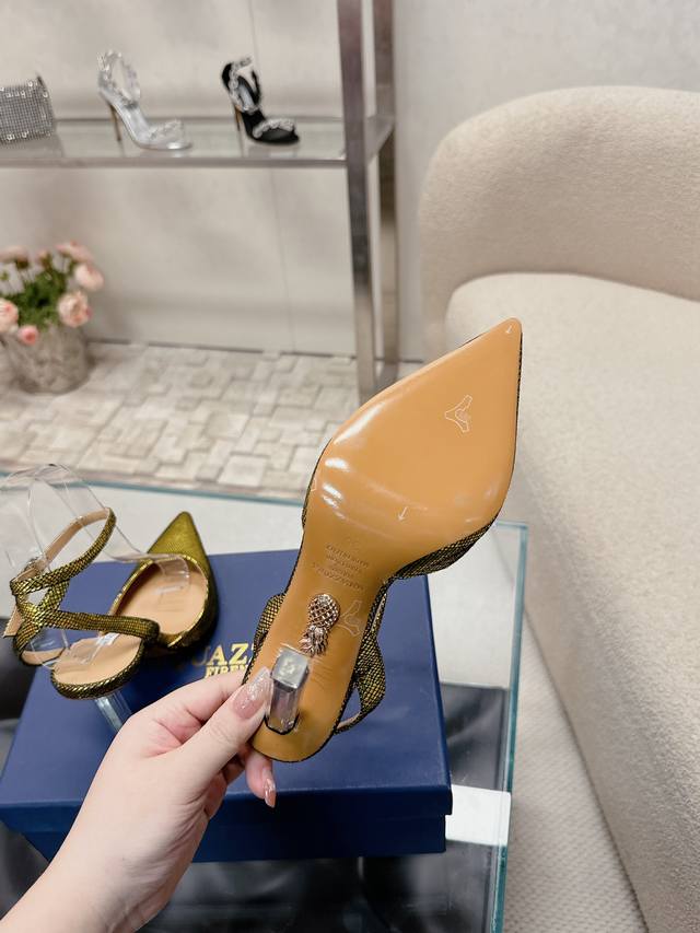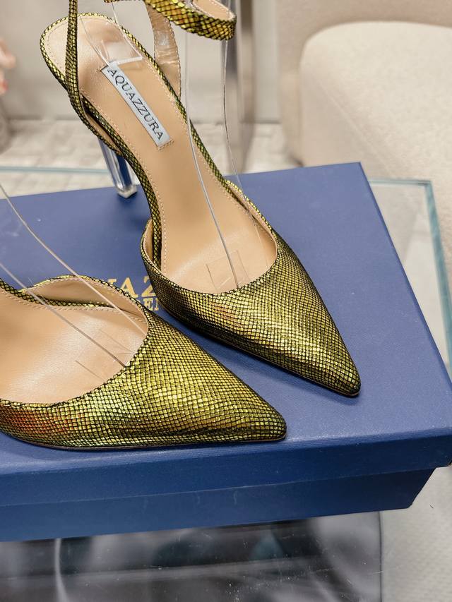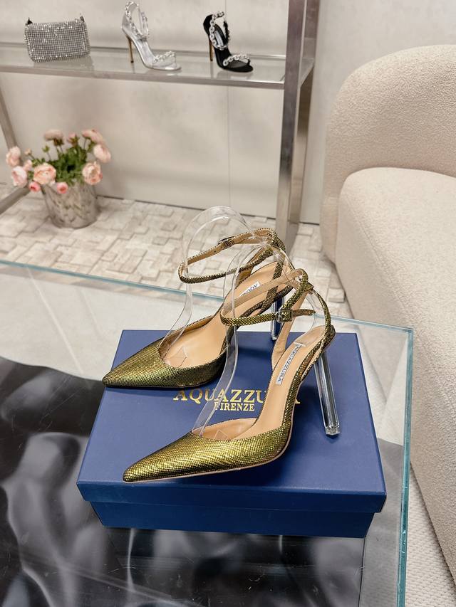 224 Aquazzur* 菠萝早春专柜新品仙女时装鞋系列,大量上新同步官网全系列均可定制龙年主打一个火爆,全网各大网红纷纷开秀,绝美的穿搭系列! ★★★★★ 鞋面 羊京水晶跟羊皮 内里 原版定制柔软羊皮 意大利真皮大底 跟高 10Cm 码数 34-42 34 40 41 42 定制不退换 专柜同步礼盒包装!