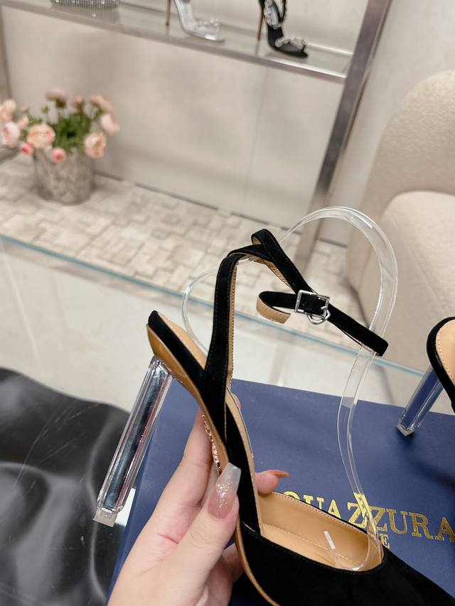 224 Aquazzur* 菠萝早春专柜新品仙女时装鞋系列,大量上新同步官网全系列均可定制龙年主打一个火爆,全网各大网红纷纷开秀,绝美的穿搭系列! ★★★★★ 鞋面 羊京水晶跟羊皮 内里 原版定制柔软羊皮 意大利真皮大底 跟高 10Cm 码数 34-42 34 40 41 42 定制不退换 专柜同步礼盒包装!