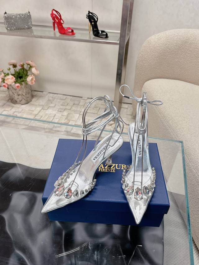 224 Aquazzur* 菠萝早春专柜新品仙女时装鞋系列,大量上新同步官网全系列均可定制龙年主打一个火爆,全网各大网红纷纷开秀,绝美的穿搭系列! ★★★★★ 鞋面 胶片钻扣羊皮 内里 原版定制柔软羊皮 意大利真皮大底 跟高 8.5Cm 码数 34-42 34 40 41 42 定制不退换 专柜同步礼盒包装!
