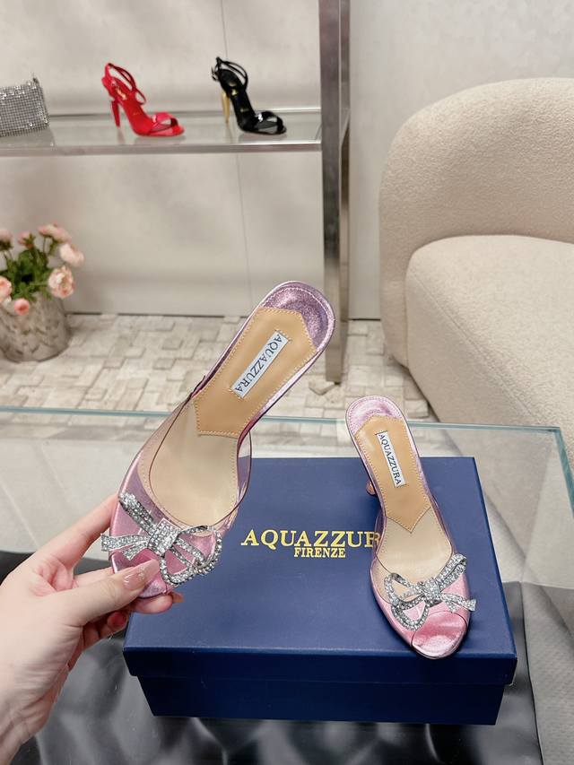 224 Aquazzur* 菠萝早春专柜新品仙女时装鞋系列,大量上新同步官网全系列均可定制龙年主打一个火爆,全网各大网红纷纷开秀,绝美的穿搭系列! ★★★★★ 鞋面 胶片钻扣羊皮 内里 原版定制柔软羊皮 意大利真皮大底 跟高 10Cm 码数 34-42 34 40 41 42 定制不退换 专柜同步礼盒包装!