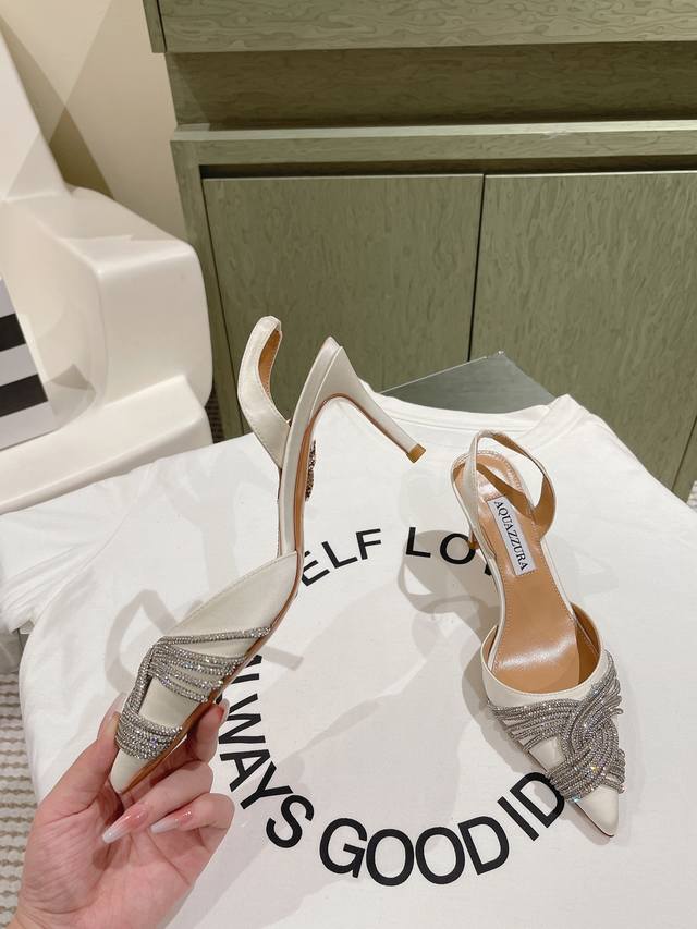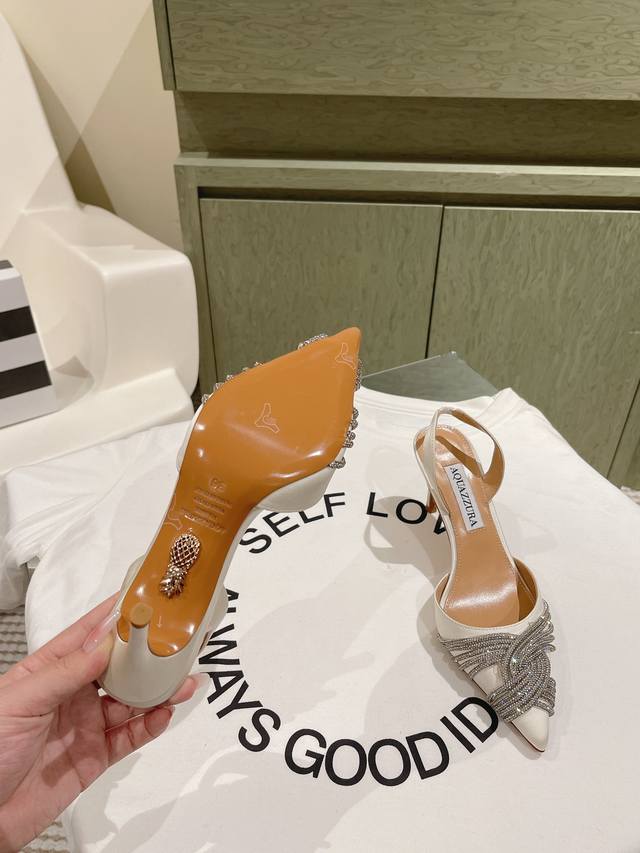 224 Aquazzur* 菠萝早春专柜新品仙女时装鞋系列,大量上新同步官网全系列均可定制龙年主打一个火爆,全网各大网红纷纷开秀,绝美的穿搭系列! ★★★★★ 鞋面 Pvc烫钻手工链条真丝 内里 原版定制柔软羊皮 意大利真皮大底 跟高 6.5Cm 10Cm 码数 34-42 34 40 41 42 定制不退换 专柜同步礼盒包装!