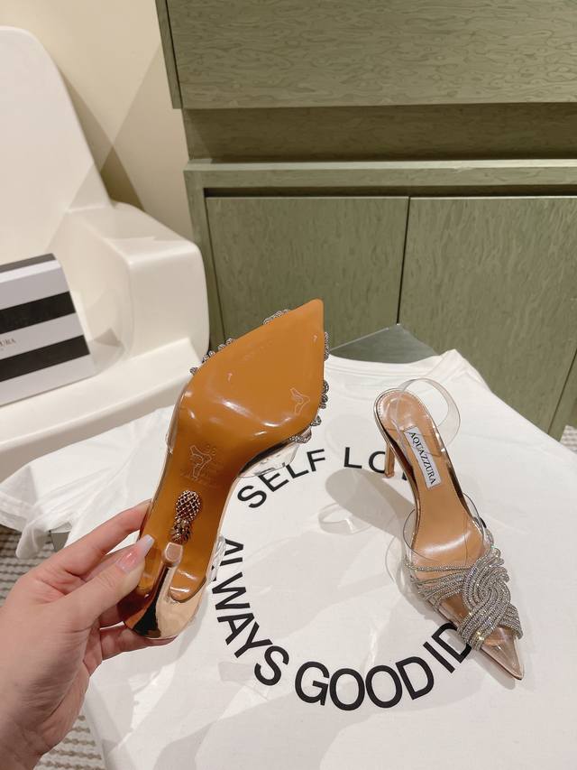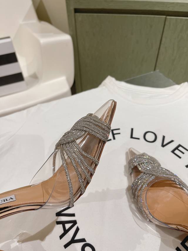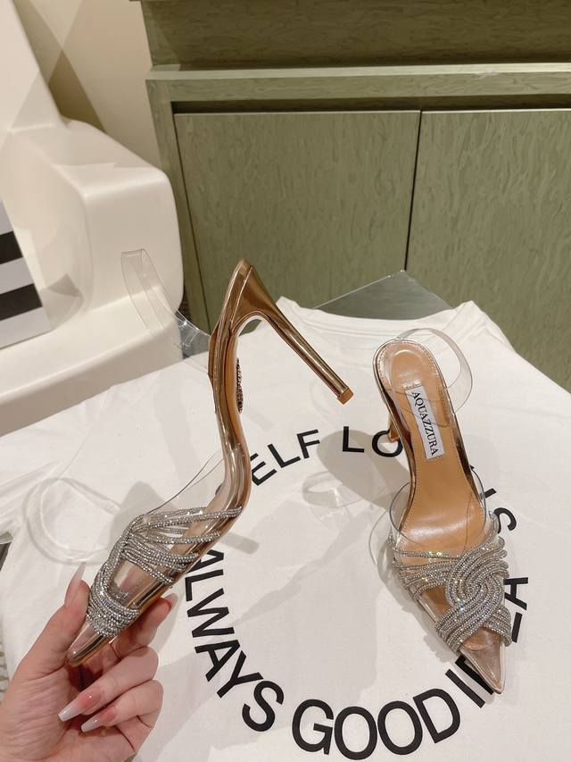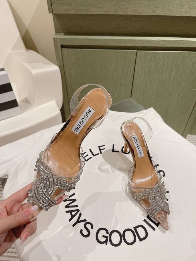 224 Aquazzur* 菠萝早春专柜新品仙女时装鞋系列,大量上新同步官网全系列均可定制龙年主打一个火爆,全网各大网红纷纷开秀,绝美的穿搭系列! ★★★★★ 鞋面 Pvc烫钻手工链条真丝 内里 原版定制柔软羊皮 意大利真皮大底 跟高 6.5Cm 10Cm 码数 34-42 34 40 41 42 定制不退换 专柜同步礼盒包装!