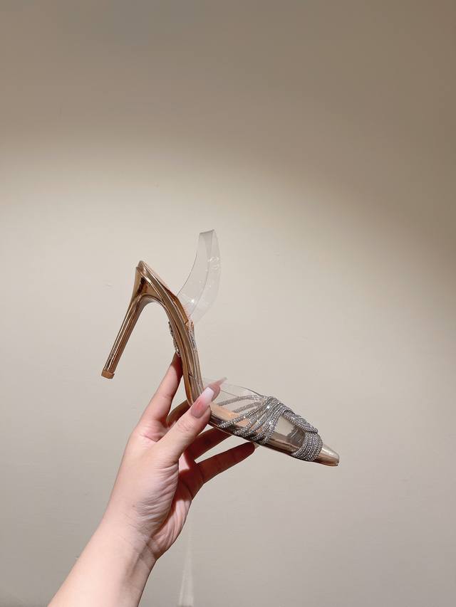顶级版 原版盒 Christian Louboutin 2025S原版做货重工Cljust Queen水晶高跟拖鞋 材质:进口Pvc+克里奥水钻 内里:粒面珠光