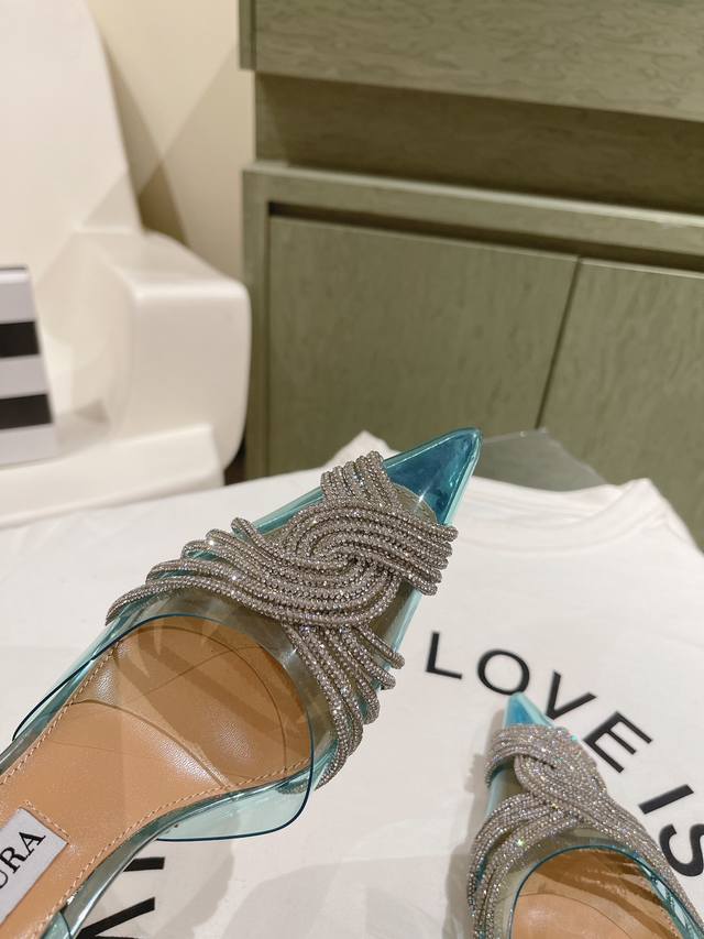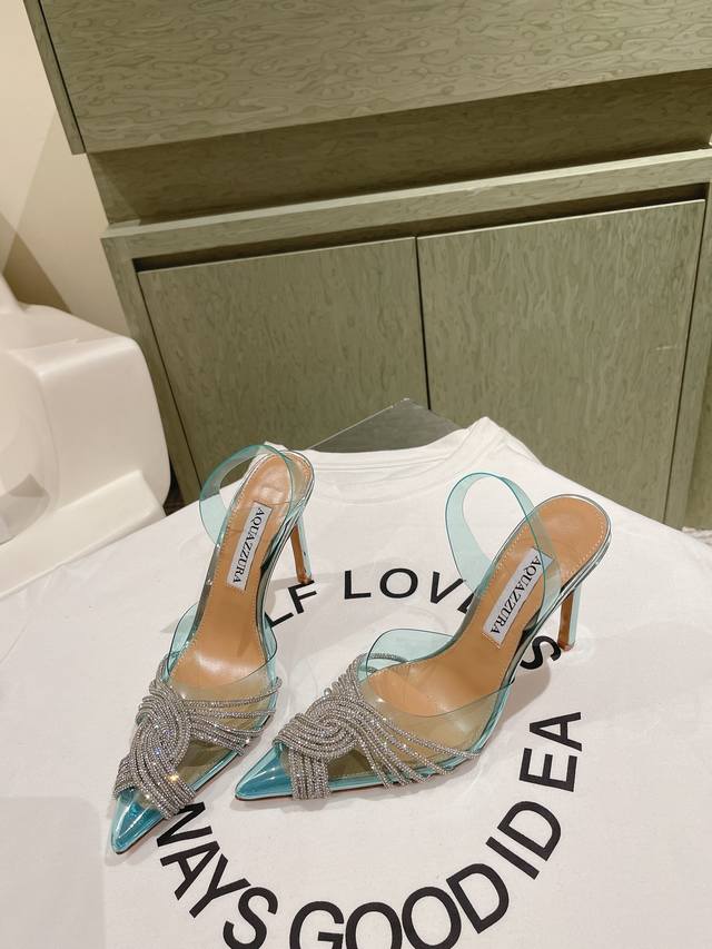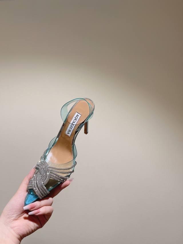224 Aquazzur* 菠萝早春专柜新品仙女时装鞋系列,大量上新同步官网全系列均可定制龙年主打一个火爆,全网各大网红纷纷开秀,绝美的穿搭系列! ★★★★★ 鞋面 Pvc烫钻手工链条真丝 内里 原版定制柔软羊皮 意大利真皮大底 跟高 6.5Cm 10Cm 码数 34-42 34 40 41 42 定制不退换 专柜同步礼盒包装!