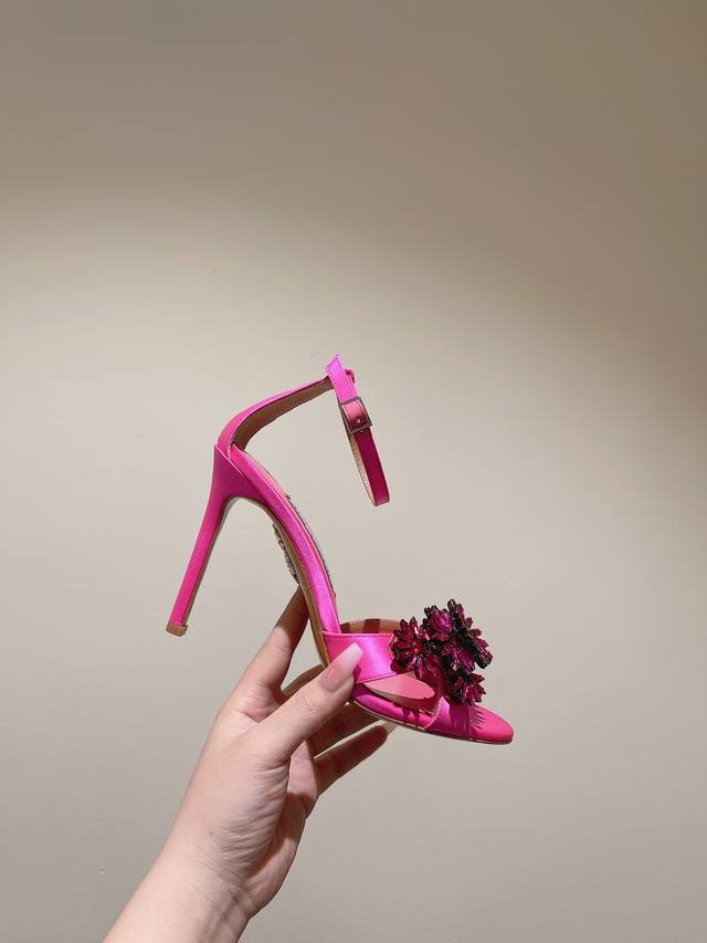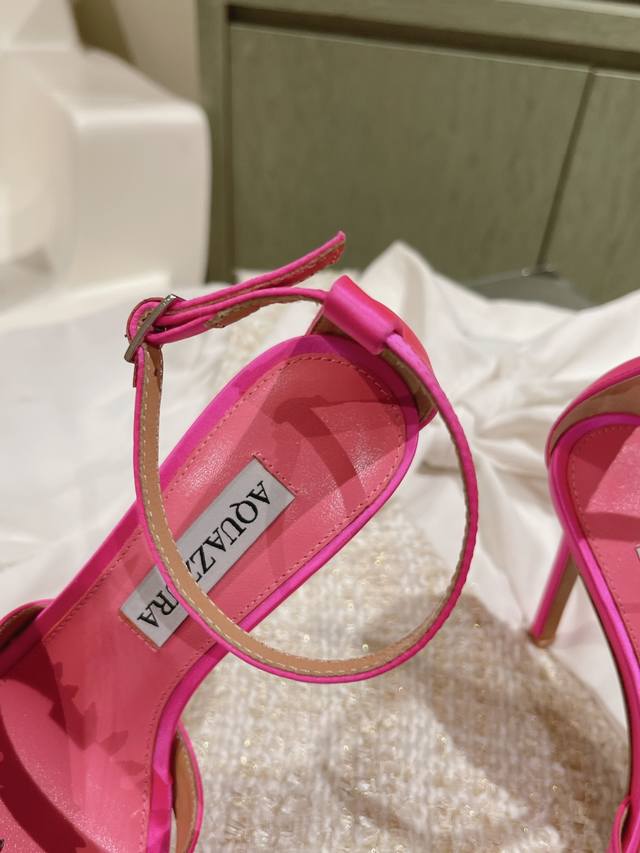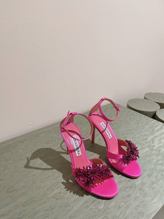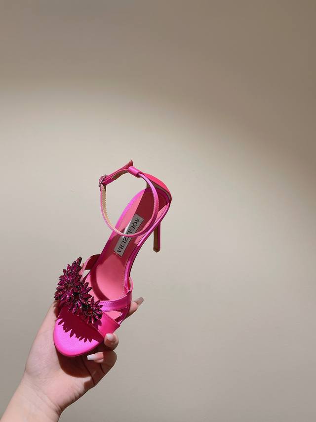Aquazzura 2024 新款凉鞋 代购品质 鞋子面料采用原版定制漆皮包边。定制装饰扣制作。闪闪发光的电镀装饰扣高跟凉鞋...