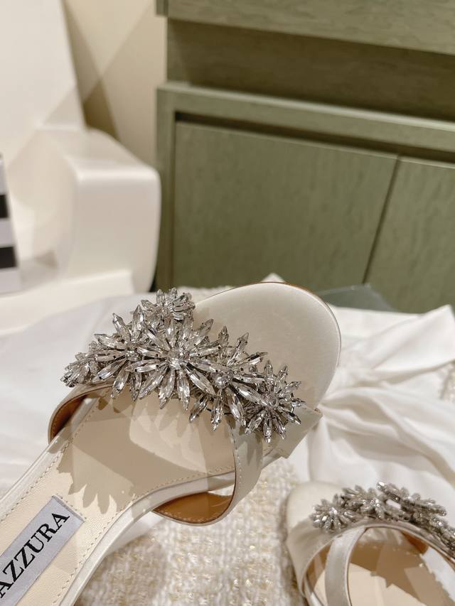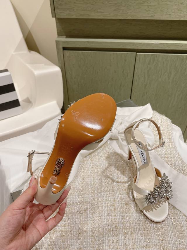 224 Aquazzur* 菠萝早春专柜新品仙女时装鞋系列,大量上新同步官网全系列均可定制龙年主打一个火爆,全网各大网红纷纷开秀,绝美的穿搭系列! ★★★★★ 鞋面 真丝私膜五金烫钻扣 内里 原版定制柔软羊皮 意大利真皮大底 跟高 10Cm 码数 34-42 34 40 41 42 定制不退换 专柜同步礼盒包装!
