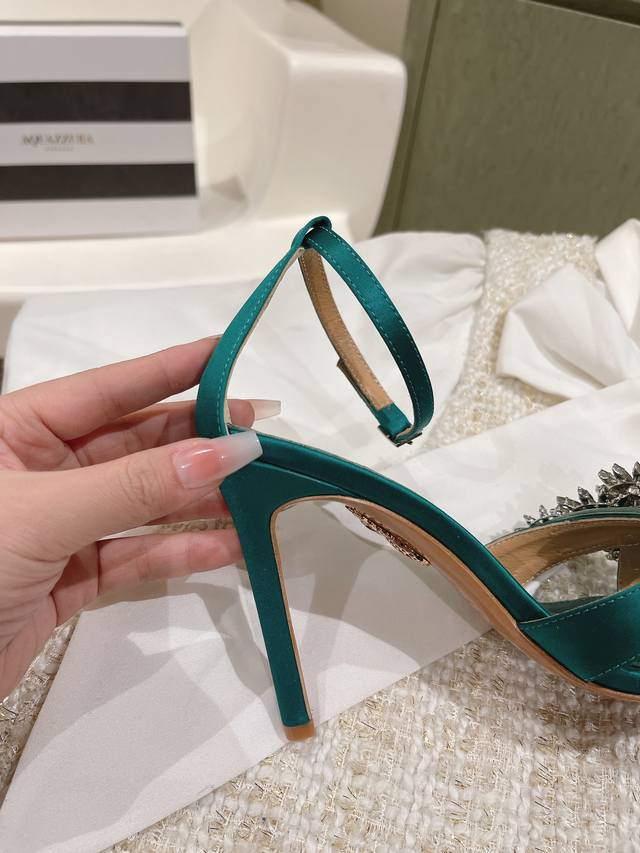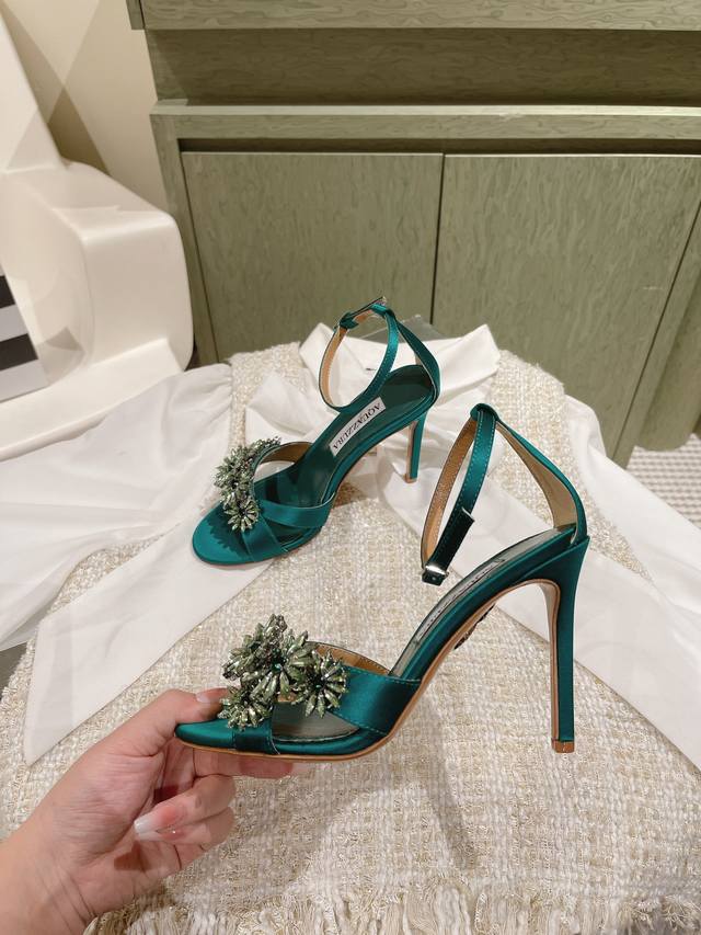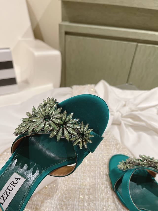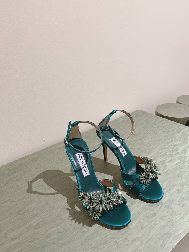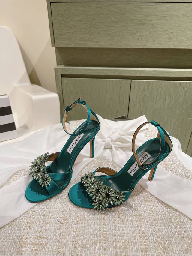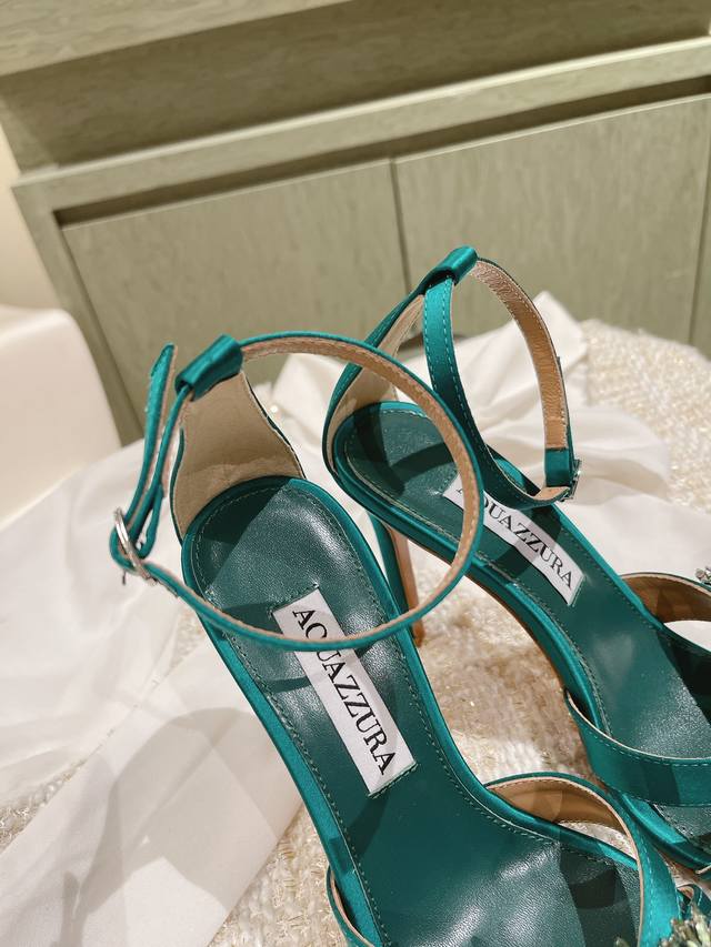 224 Aquazzur* 菠萝早春专柜新品仙女时装鞋系列,大量上新同步官网全系列均可定制龙年主打一个火爆,全网各大网红纷纷开秀,绝美的穿搭系列! ★★★★★ 鞋面 真丝私膜五金烫钻扣 内里 原版定制柔软羊皮 意大利真皮大底 跟高 10Cm 码数 34-42 34 40 41 42 定制不退换 专柜同步礼盒包装!