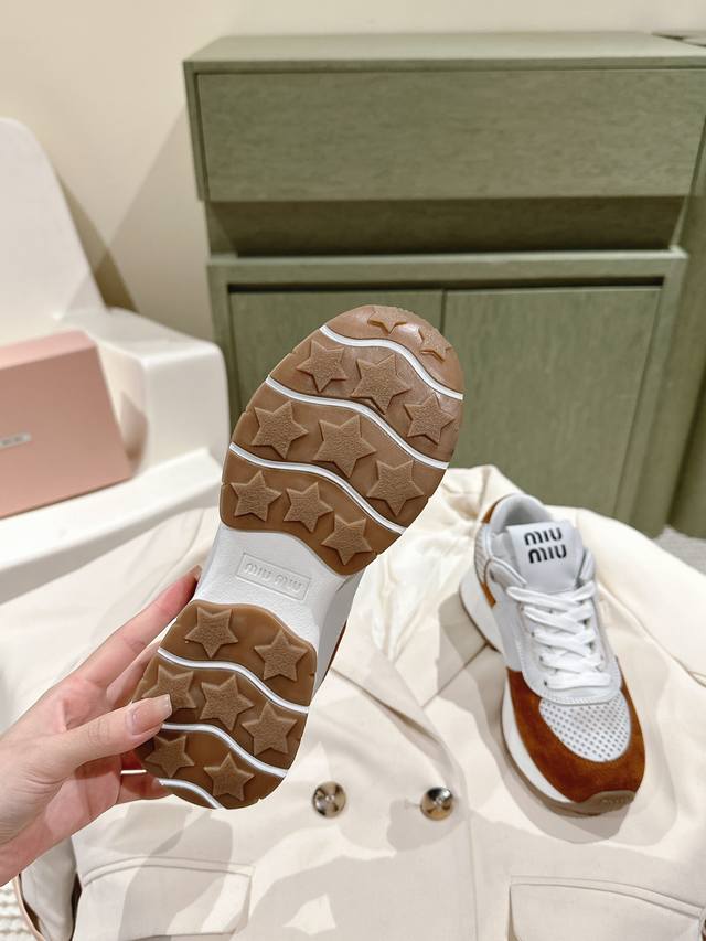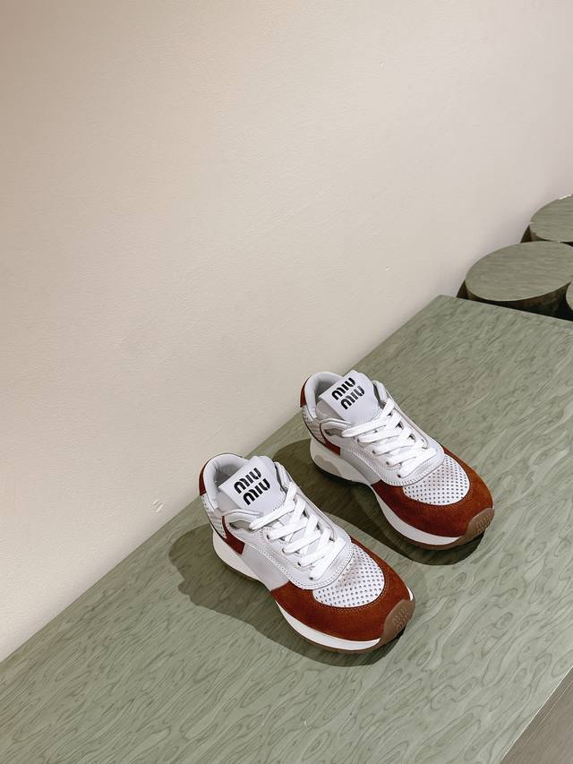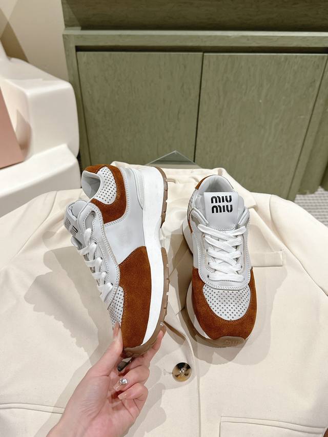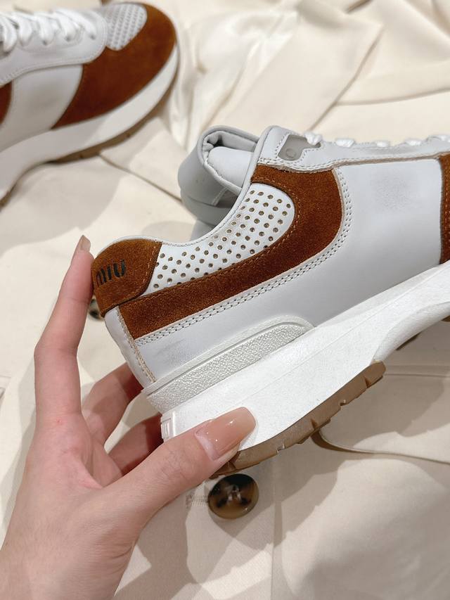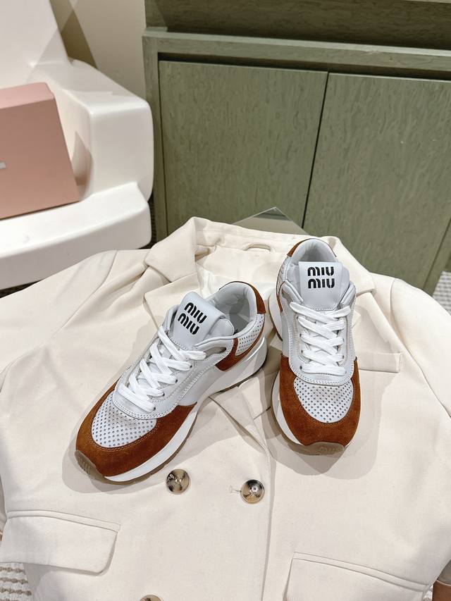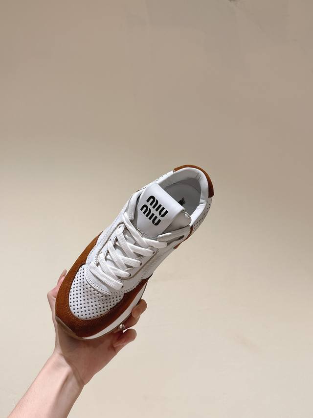 224 Miumiu 缪缪新款美式复古风~ 颜值担当火爆款运动鞋 不得不入的一款~做旧时尚,简约高级 随意搭配上脚非常舒适,年度必入款! 早春最新走秀款运动小白鞋国内外博主刷爆的一款,小红书种草系列,复古又时髦上脚美炸了简约的运动板鞋设计,极具辨识度的鞋舌,打造佛系甜美的休闲风~~上脚气场十足随意搭配, 选用头层牛皮材质,内里丝绸牛皮里,原版Tpu抽真空厚底 复古擦色做旧! Size.:35-41 40 41定做不退换 全套专柜同步包装!