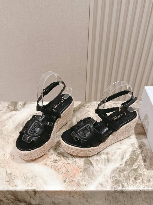/ 225 早春新款麻绳坡跟拖鞋 专柜新款顶级上新 鞋面:原版定制小羊皮电镀五金Logo 内里:透气柔软全羊皮内里 大底:原版麻绳坡跟大底 鞋码: 35-40 跟高