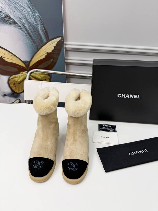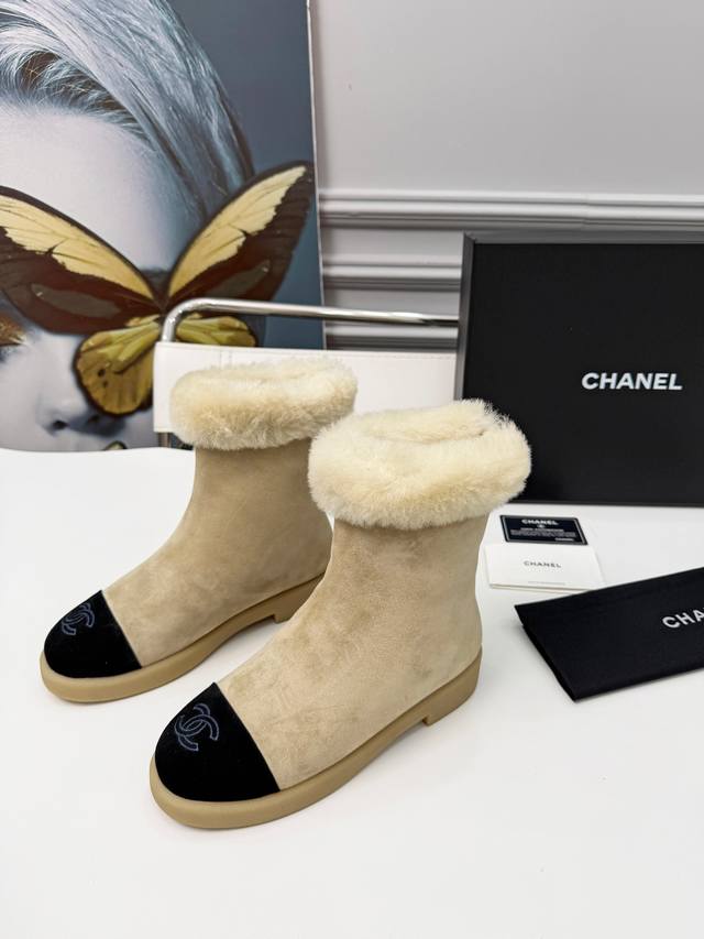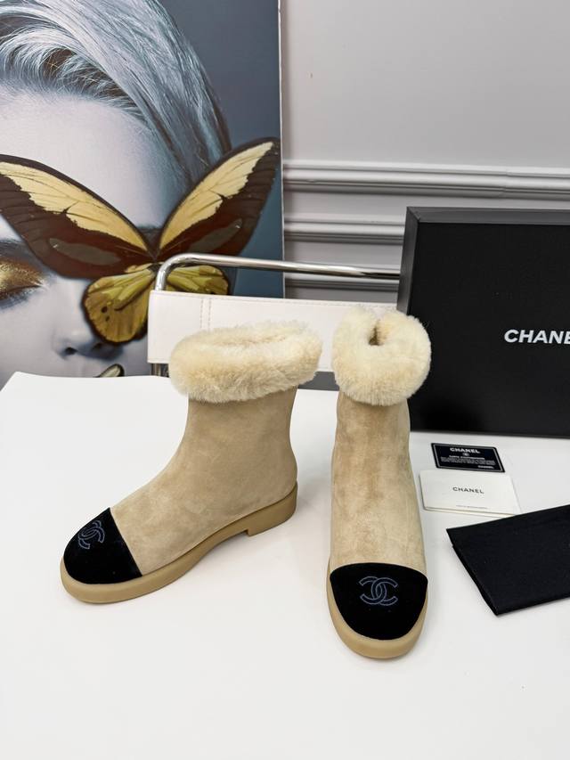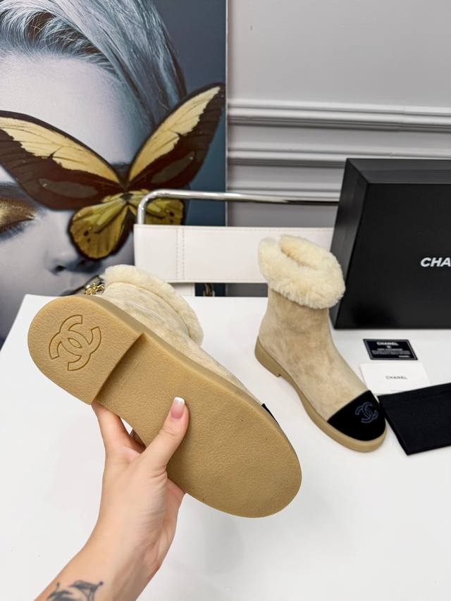 / 25年冬新款小香风雪地靴女真皮平底加厚加绒毛毛短靴香奶奶烟筒靴 冬季必备款时尚却不过分张扬 鞋面磨砂皮内里真毛特别的柔软亲肤 鞋底天然防滑耐磨底 码数:35-4