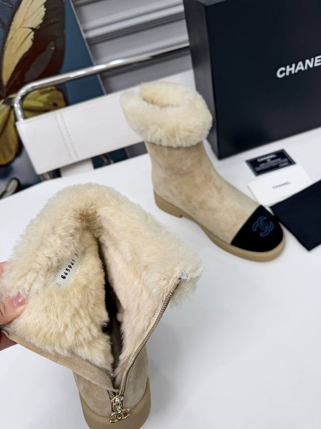 25年冬新款小香风雪地靴女真皮平底加厚加绒毛毛短靴香奶奶烟筒靴 冬季必备款时尚却不过分张扬 鞋面磨砂皮内里真毛特别的柔软亲肤 鞋底天然防滑耐磨底 码数:35-4